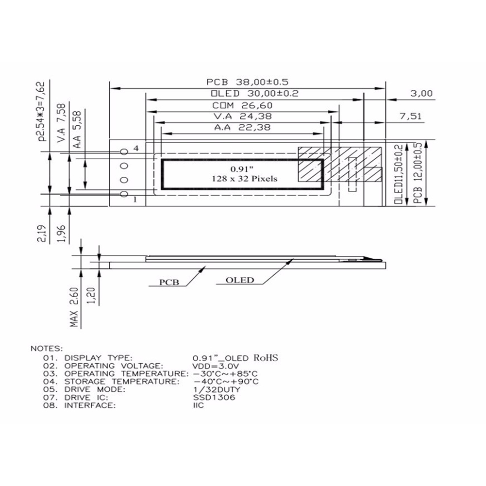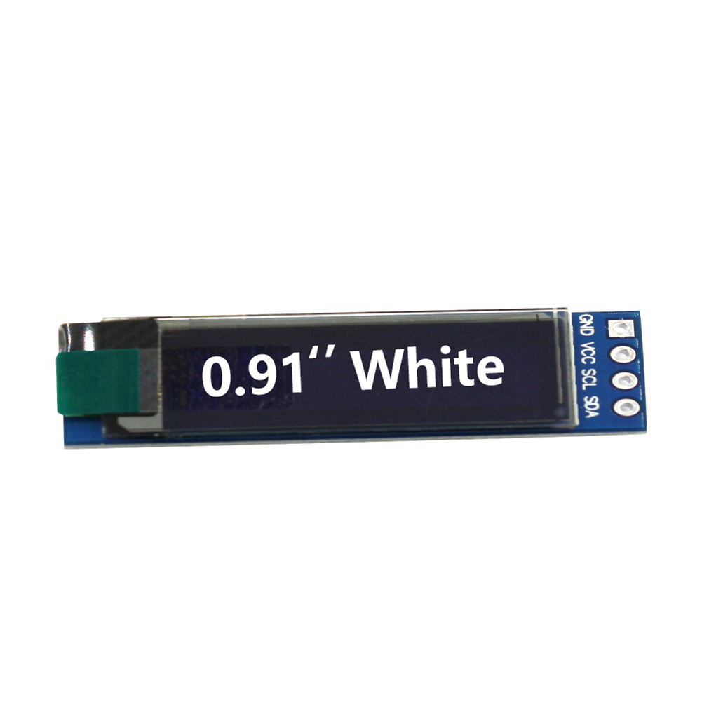 no backlight, self-luminous, display performance is better than traditional LCD display also reduces consumption. Driver IC: SSD1306 Resolution: 128 x 32 IIC interface Size: 0.91 inch OLED