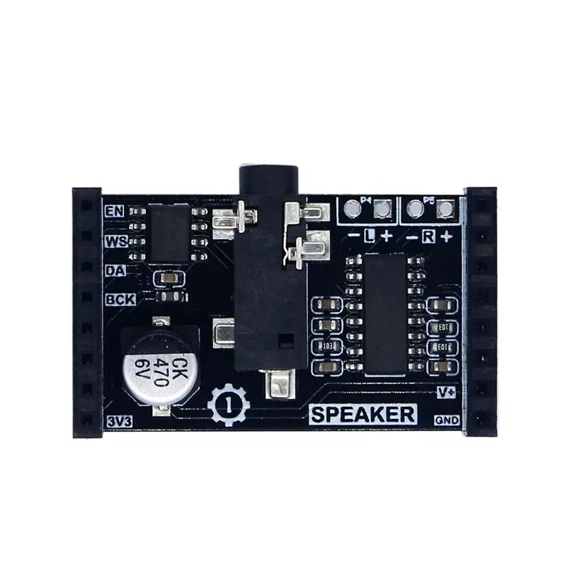 . La description: Le module de haut-parleur dispose d'une interface numerique I2S standard et d'amplificateurs de puissance 2 voies 3W classe D. Il prend en charge la sortie d'interface standard de 3,5 mm (commutation automatique), peut egalement etre connecte e des haut-parleurs externes. Specification: Schema de module PT8211 + PAM8403 Mode de contrele I2S Type d'amplificateur Classe D Puissance de sortie 2 voies 3W Autre Sortie audio standard de 3,5 mm Taille globale 3.0*2.5cm Plate-forme pyAI-K210 Emballage inclus: 1 x module de haut-parleur 2 x petit haut-parleur