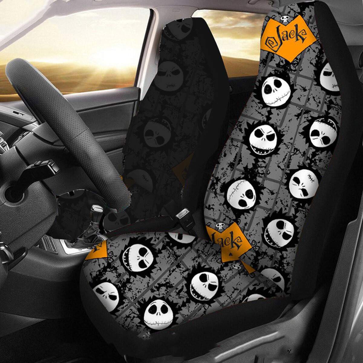 1/2Pcs Skull Printed Universal Car Front Seat Cover Auto Cushion Protector Mat – 1pc B
