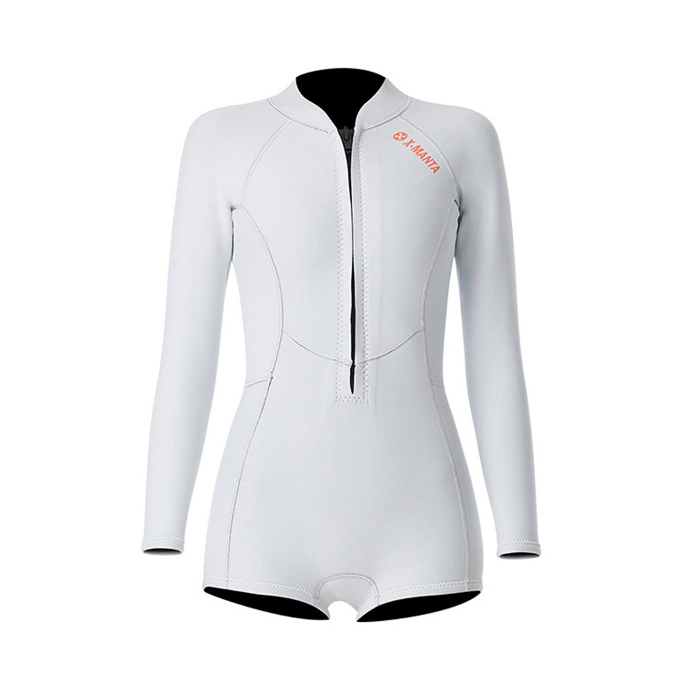 1.5MM Siamese Wet-type Warm Long Sleeve Jellyfish Swimming Surfing Stocking Suit White top_M quantity