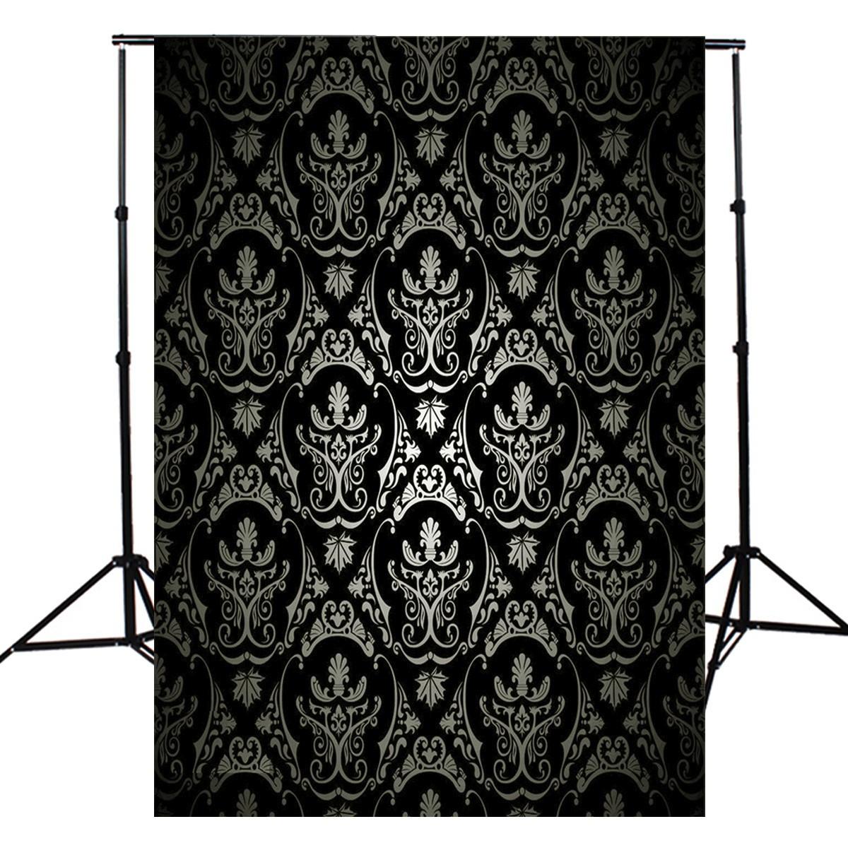 1.5×2.1m Photographie Retro Damask Tissu Studio Props Fond Vinyle Noir