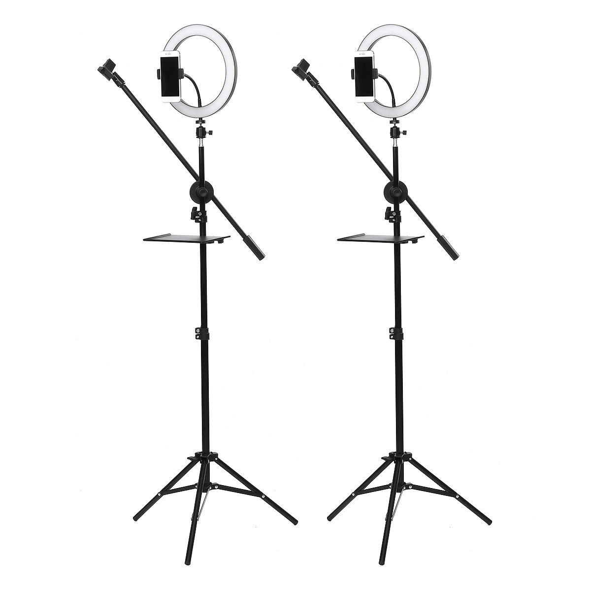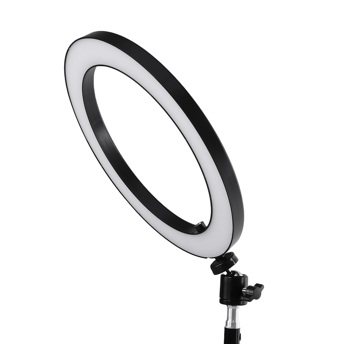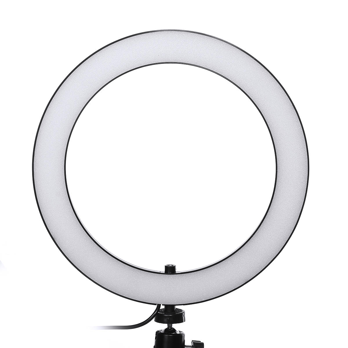 . Fonctionnalites: Nacelle e rotation e 360 e 10 reglages de luminosite, 3 reglages de couleurs claires Avec telecommande, facile e utiliser et e contreler Avec Rack, peut placer une carte son live pour chanter ou en ligne Dimmable LED RING LIGHT: Fournit une lumiere vive et douce, adaptee e l'eclairage photostudio Support de trepied reglable de 54 cm e 160 cm (entierement contracte, e l'exception de la lumiere de remplissage de 54 cm). Le support de telephone double est compatible avec la plupart des smartphones Protection des yeux ABS couvercle de la lampe avec des perles de lampe rendent la lumiere plus naturelle, non eblouissante, ameliore l'article en trois dimensions Multi-fonctions: C'est un outil professionnel pour creer des videos / enregistrements en direct avec un smartphone ou un ordinateur. Lumiere supplementaire parfaite pour le maquillage, la diffusion en direct, la pose e plat, les photos de selfie, le tournage, l'enregistrement video, l'enseignement en ligne, le vlogging de paysages sombres, etc. Application: Peut etre utilise pour la beaute du retardateur, la webemission comme YouTube, l'enseignement de la modelisation du maquillage Leeon en direct, la lumiere de remplissage de la photographie de mariage, la lumiere de remplissage des ongles de tatouage, la lumiere de remplissage du studio de coiffure, la lumiere de remplissage de la photo du produit et adaptee e tous les besoins pour remplir le lumiere de l'environnement. Specification: Type: A: avec sac de rangement, B: sans sac de rangement Diametre de la lumiere de l'anneau: 26cm Alimentation: port USB Temperature de couleur: 2800-6500K Reglage de la luminosite: 10 luminosite reglable 3 Couleur de lumiere: lumiere chaude, lumiere blanche, lumiere blanche chaude Emballage inclus: 1 x 26cm anneau lumineux 1 support de trepied pour lumiere annulaire de 1,6 m 1 x trepied 1 x Telephone Clip 1 x pied de microphone 1 x telecommande Bluetooth Selfie 1 x 20x14cm Rack 1 x sac de rangement (uniquement modele A)