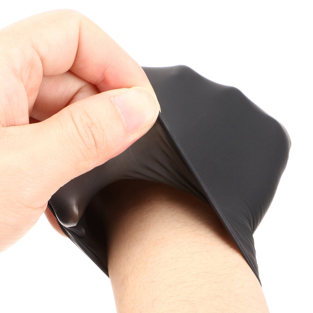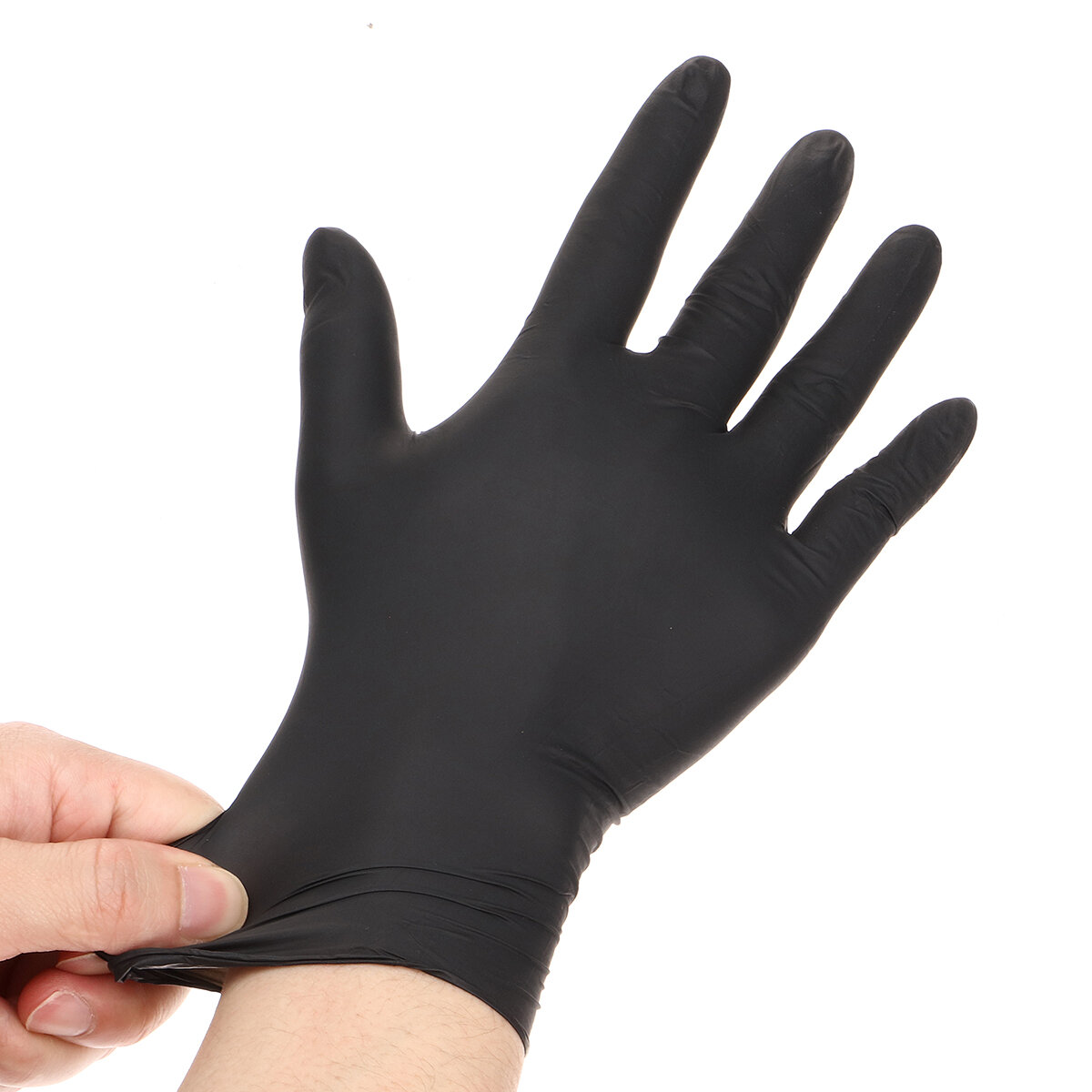 . Fonctionnalite: ?Resistant aux perforations, dechirures et dechirures. ?Excellente sensibilite tactile. ?Les gants jetables, flexibles, confortables. ? Coneu pour une utilisation prolongee et protegera vos mains. ?Ces gants en nitrile conviennent e l'impression aboratoire, e la sante, aux salons de beaute et e la transformation des aliments, aux ateliers d'usine, etc. Caracteristiques: Matiere: nitrile Taille: S, M, L, XL, XS La couleur noire Le forfait comprend: 100 x gants en nitrile
