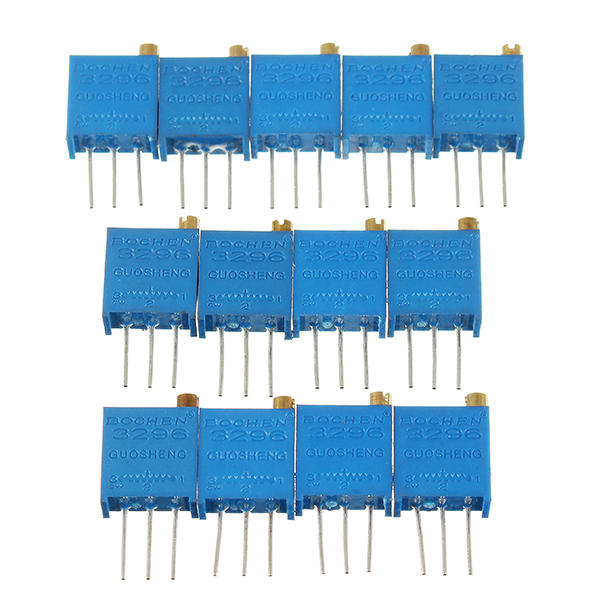 . La description: 100R (101) 200R (201) 500R (501) 1k (102) 2k (202) 5K (502) 10K (103) 20K (203) 50K (503) 100K (104) 200K (204) 500K (504) 1M (105) 13 valeurs, 5pcs chaque valeur, total 65pcs. Emballage inclus: 65 x 100R-1M 13 valeurs 3296 potentiometre