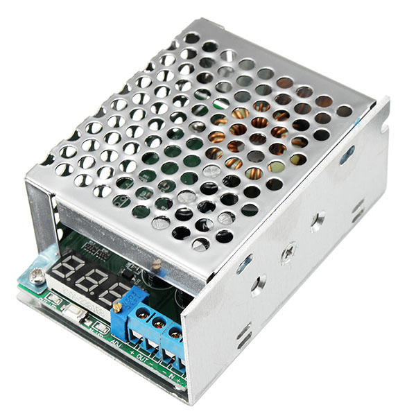 . RE : ce module n'a pas de protection contre les polarites. Fonctionnalite: Dimensions: longueur x largeur x hauteur = 8.5cm x 5.8cm x 3.3cm Tension d'entree: DC3.5 ~ 30V Tension de sortie: DC0.8 ~ 29V Courant de sortie: 10A (MAX) Efficacite de conversion: 92% (commutateur 24V 12V / 2A lorsqu'il est mesure) Compteur de tension embarque: affiche la tension d'entree ou la tension de sortie, appuyez brievement sur le bouton sous le commutateur numerique, les voyants LED s IN sont la mesure de tension d'entree, LED balise de mesure de lumiere OUT est la tension de sortie. Affichage de tension etalonne en usine, sans etalonnage supplementaire. Le forfait comprend: Module de puissance 1 x Step Down