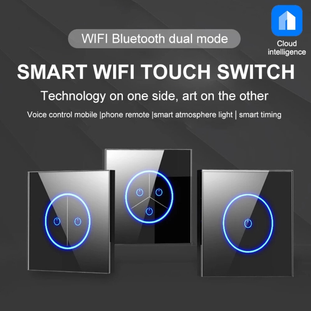 . Information produit: nom du produit: interrupteur tactile intelligent WIFI taille: Type 86 / 86mm * 86mm couleur: Classic noir / blanc simple Materiau: verre trempe / PC ignifuge Voyant lumineux: anneau LED indicateur de lumiere douce Nombre de canaux de commande: One ouverts / deux ouverts / trois ouverts Tension: 110V-250V Courant de charge: 10A MAX Puissance de sortie: 2500W MAX Instructions: Mode de contrele APP 1. Scannez le code Qr sur votre telephone, ou recherchez eCloud Intelligencee sur le marche des applications, telechargez l'application et inscrivez-vous 2. Installez l'equipement, faites-le electrifier, pouvez utiliser normalement, appuyez longuement sur n'importe quelle touche de l'equipement pour allumer avec le clignotement, entrez dans l'etat du reseau de distribution (scintillement rapide: Bluetooth-Config, SlowFlicker: Smart-Config) 3. Ouvrez l'application "Cloud Intelience", entrez dans la page d'accueil, cliquez sur "+" dans le coin superieur droit pour decouvrir automatiquement l'appareil, ou cliquez pour ajouter manuellement et selectionnez "obbo Smart Switch" 4. Selon l'invite de l'interface, entrez le mot de passe du reseau sans fil h?me2.4G, l'appareil se connectera au reseau sans fil 5. Apres avoir defini le nom de l'appareil et l'emplacement de la piece, l'appareil est ajoute avec succes 6. Une fois ajoute completement, l'appareil peut etre contrele Commande vocale intelligente du haut-parleur: Amazon alexa 1. Lier un appareil: liez l'appareil via l'application eCloud lntelligencee, ajoutez-le e la liste des appareils sur la page d'accueil et vous pouvez le renommer, par exemple eMy Smart Switche. 2. Tum sur la competence "Cloud intelligence", vous devez avoir un haut-parleur Amazon, puis recherchez "Cloud Intelligence" dans la section des competences de l'application Alexa et cliquez sur "Activer" 3. Lier un compte: saisissez le nom du compte et le mot de passe de l'application "Cloud Intelligence" pour associer "Cloud Intelligence" e "Alexa" 4. Dispositif de commande vocale: apres l'association, le contrele vocal peut etre effectue sur l'appareil lie e "Cloud Intelligence APP Assistant Google 1. Lier un appareil: liez l'appareil via l'application "Cloud Intelligence", ajoutez-le e la liste des appareils sur la page d'accueil et vous pouvez le renommer, par exemple "My Smart Switch" 2. Tum sur la competence "Cloud ltelllince: vous devez avoir le haut-parleur ?Google Home, puis recherchez" Cloud Intelligence "dans l'application Home Control de Google Home (ou Assistant Google). 3. Lier un compte: saisissez le compte et le mot de passe de l'application "Cloud Intelligence" pour associer "Cloud Intelligence" e "Assistant Google" 4. Dispositif de commande vocale: apres association, le contrele vocal peut etre effectue sur l'appareil lie e l'application "Cloud Intelligence" Emballage inclus: 1 x interrupteur intelligent