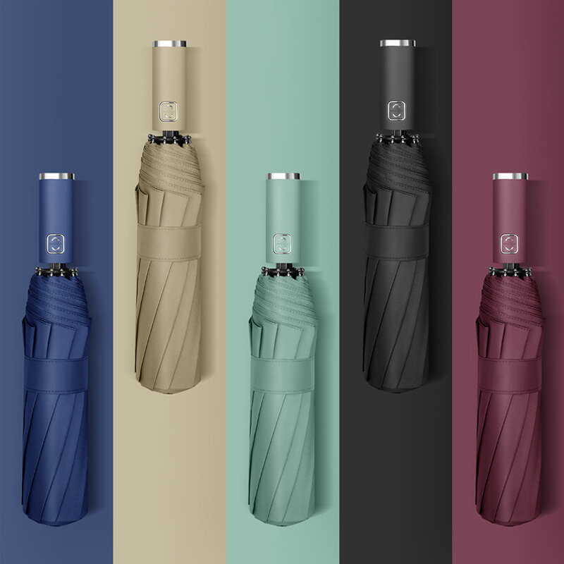 10K Solid Color Business Automatic Umbrella Three-folding Waterproof Wind-resistant Umbrellas Man Women Sun And Rain Dual-use Umbrella