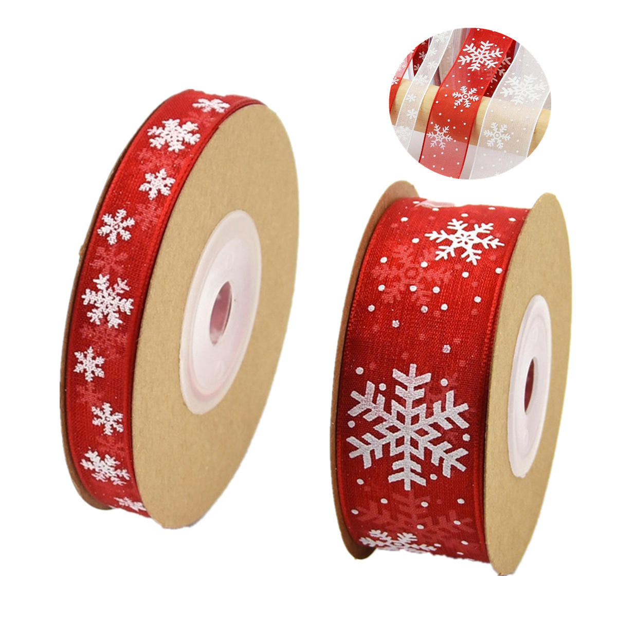 10M Snowflake Printed Sheer Organza Ribbons Ribbon Wedding Party Decorations Decorative Ribbon – 1cm Red