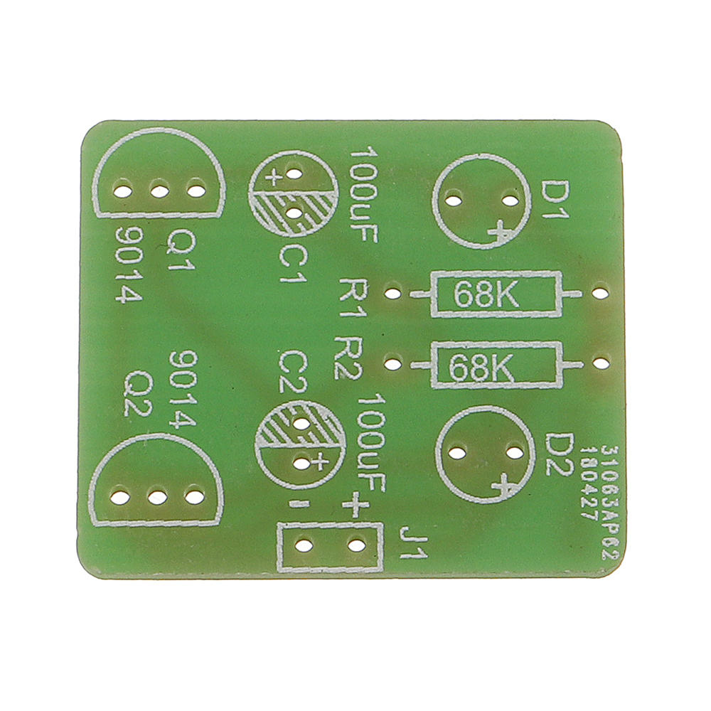 Comment ea marche: e la mise sous tension, deux transistors se font concurrence pour le fil, mais e cause des differences de composants, un seul transistor est le premier e s'allumer. Si VT1 est le premier e s'allumer, la tension du collecteur VT1 chute, LED 1 est allume, l'extremite gauche du condensateur C2 est proche de la tension zero, car la tension aux deux extremites du condensateur ne peut pas muter, de sorte que la base VT2 est tiree tension proche de zero, de sorte que VT2 est coupe, LED 2 neest pas brillant. e mesure que l'alimentation charge la resistance R3 e C2, la tension de base de Q2 augmente progressivement. Lorsque la tension depasse 0,6 V, le VT2 passe de l'etat coupe e l'etat passant, la tension du collecteur chute et le voyant LED 2 est allume. En meme temps, la diminution de la tension du collecteur de VT2 fait sauter la tension de base de VT1, VT1 passe de active e desactive et LED 1 s'eteint. Dans ce cycle, les deux triodes s'allument et s'eteignent, et les deux LED circulent en continu. La modification de la resistance ou de la capacite de R2 ou R3 peut modifier la vitesse de scintillement de LED.