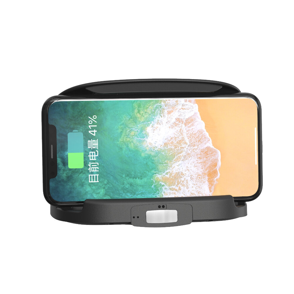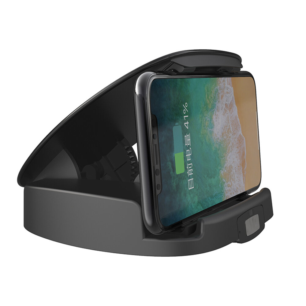 : Horizontal buckle fixed design, is not afraid of bumps and long roads. The horizontal buckle design can clamp more areas of the mobile phone, reduce the pressure of the mobile phone's own weight and car vibration on the fixation of the bracket, and achieve a firm and stable effect. Before the product went online, it passed a variety of standard tests on bumpy roads.and the fixed position of the mobile phone remained motionless. Feature: 1. Automatic sensing. Infrared induction, the upper cover charging board automatically opens, and automatically closes if it is not used within 3 seconds. 2. Low-loss pure copper core, 10W wireless fast charging. Support QC3.0 protocol and 10W wireless charging,charging speed can be seen by naked eyesListening to songs and navigation all the way forward without anyworries. Another 15W fast charge is available. 3. Automatic temperature detection, cooling first and then charging, is the top priority of safe travel. The built-in temperature sensor chip, when the temperature in the car is too high, the car charger will automatically fan the temperature to avoid dangers caused by the hot phone. When the temperature is normal, the car charger will automatically charge. Exquisite design concept, practical and safe. 4. Dedicated blower cooling fan bring quiet and harmonious. Comes with a dedicated blower cooling fan, energy saving and low consumption, silent air supply, High power and long life, the mobile phone will not be hot after working for a long time, and it willbe.coolerin he car without taking up air conditioning. 5. Apply to the 4.5-6.5 inch mobile phones. Universal for Apple and Android. The phone is still compatible with the case. Specification: Product name Wireless Car charger Type Wireless charging Interface TYPE-C Input 5V2A , 9V1.67A Output 10W ,7.5W,5W adaptive Cooling fan 5V0.22A 8500 rpm Working humidity 10 percent -90 percent RH, no condensation Material flame retardant PC , nano silica gel Colour black Product size 13 12 3cm Weight 535g Applicable location dashboard surface and desktop Package Included: 1 X Wireless Car Charger