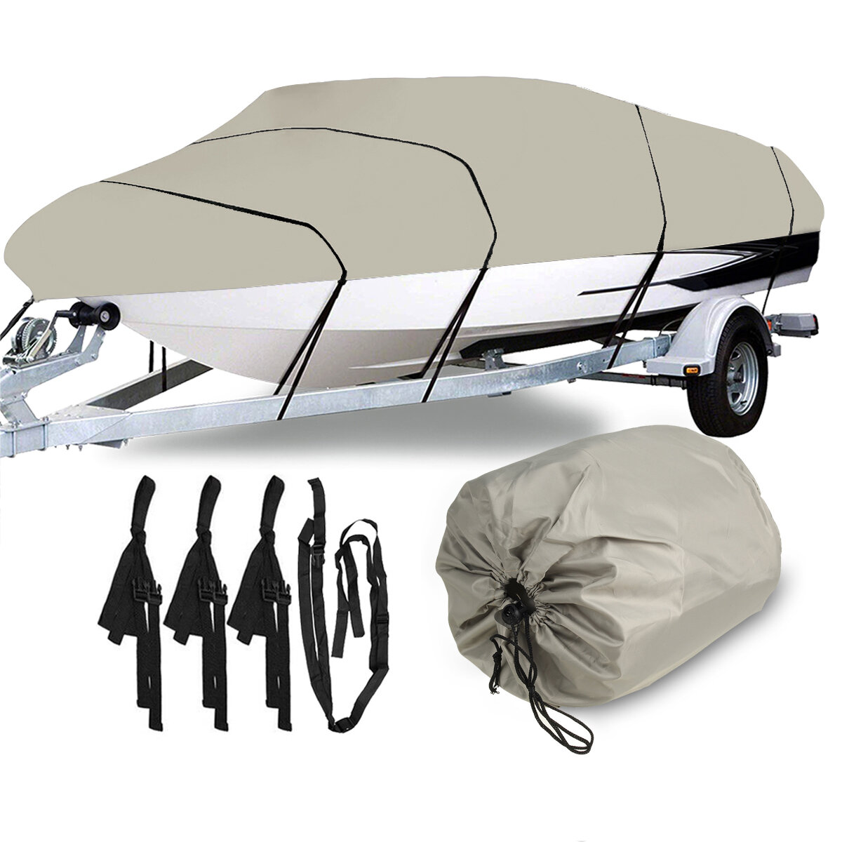 11-13ft/14-16ft/17-19ft/20-22ft 210D Heavy Duty Boat Cover For Fish Ski Bass V-Hull Runabouts Waterproof – 11-13ft