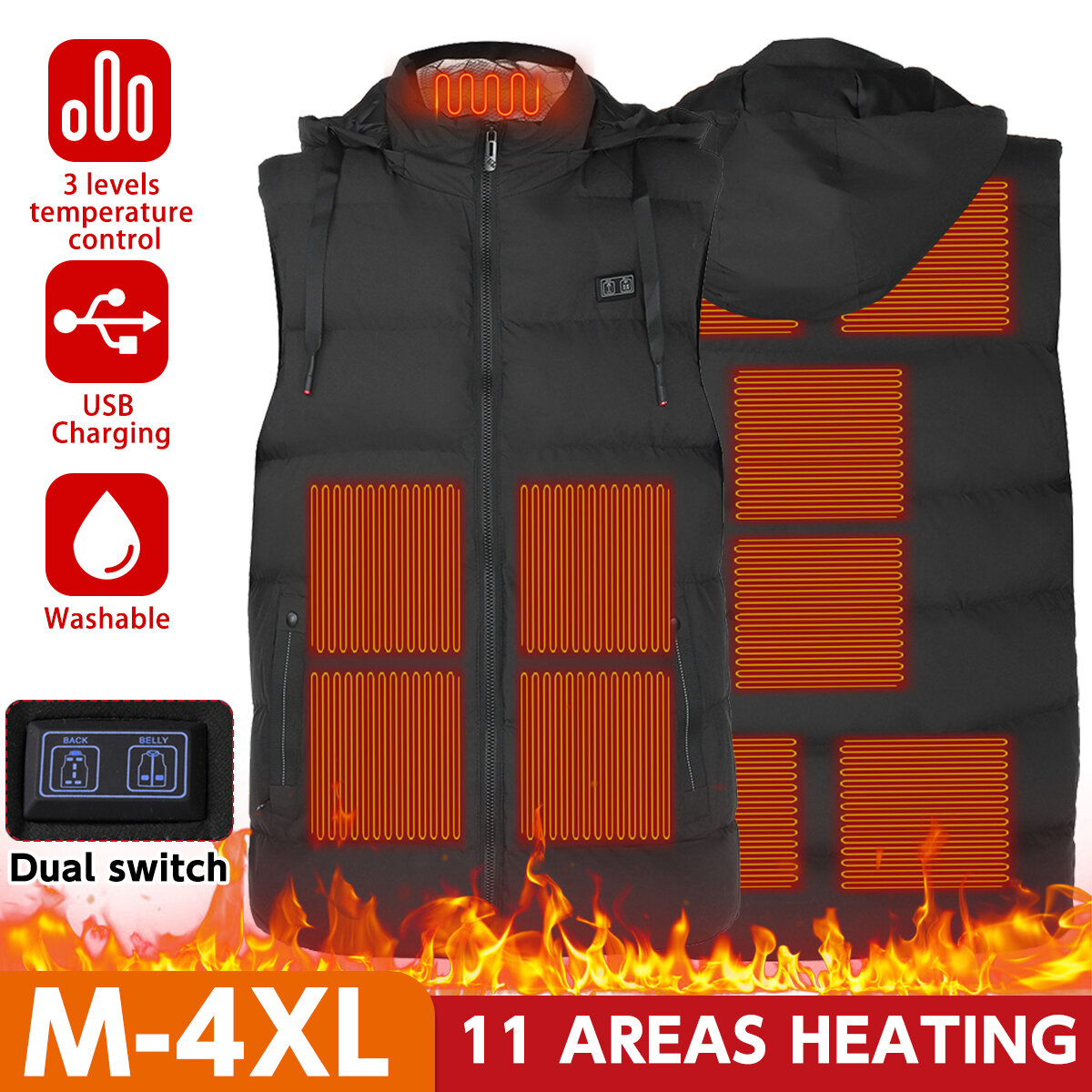 11 Heating Zones Vest Warm Winter Men Women Electric USB Jacket Heated Thermal Coat – Black XL