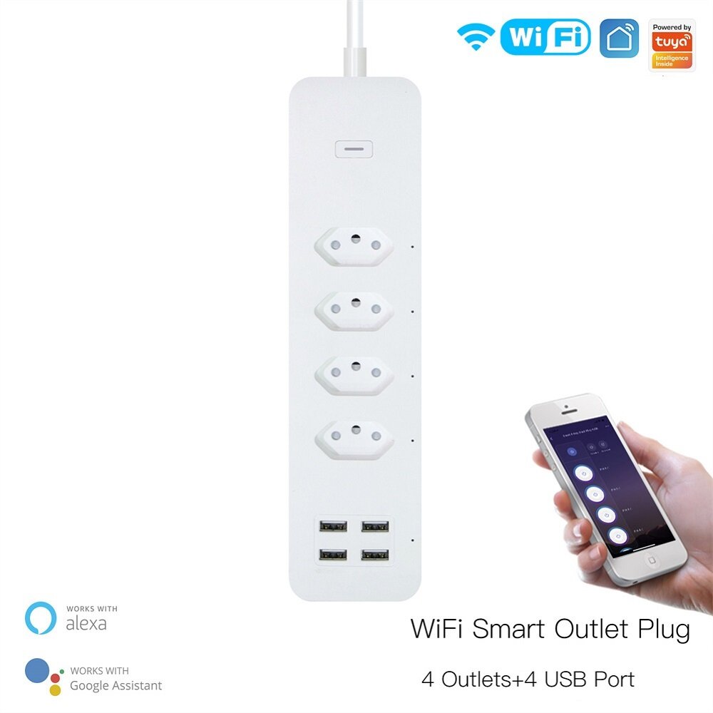 110-240V Tuya Smart Wifi Bresil Prise Standard 4 Prises + 4 Port de Charge USB App Telecommande Fonctionne avec Alexa Google Home – norme bresilienne