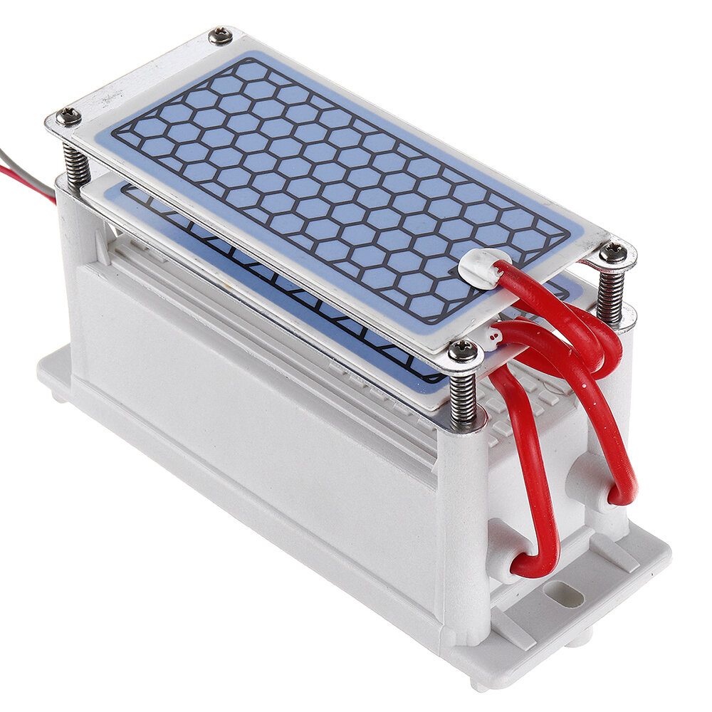 . Fonctionnalite: Taille de la coque: 147 mm * 55 mm * 88 mm Taille de la feuille d'ozone: 105 mm * 50 mm Taille du dissipateur de chaleur: 122 mm * 51 mm Tension d'entree: 220V 50 / 60Hz Tension de sortie: 5,5KV e 0,5KV Sortie d'ozone: 20000 mg / H Puissance d'entree: moins de 85W Poids de l'alimentation: 335G Le forfait comprend: 1 x generateur d'ozone