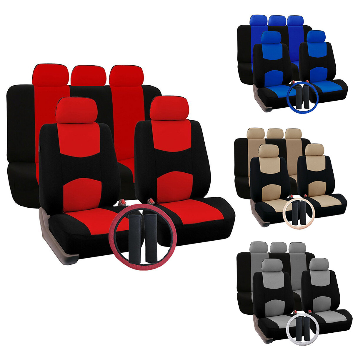 12 PCS Universal Vehicle Car Seat Cover with Headrest Steering Wheel Protector – Blue.
