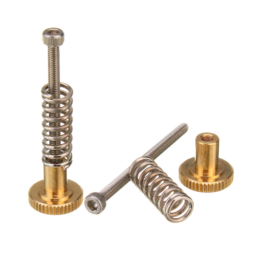 . Caracteristiques: - Produit: Kit de ressort de nivellement pour lit chauffant UM2 - Taille de printemps forte: diametre 1.2mm / diametre exterieur 7mm / diametre interieur 5 / hauteur 20mm total 9 tours - Taille de vis e six pans creux: SZ105065 Tete 304 Fleur HM3 * 45 - Pour: lit chauffant pour imprimante 3D UM2 - Quantite: 12pcs - Materiau: alliage laiton / aluminium Emballage inclus: 12 x vis 12 x Nut 12 x printemps