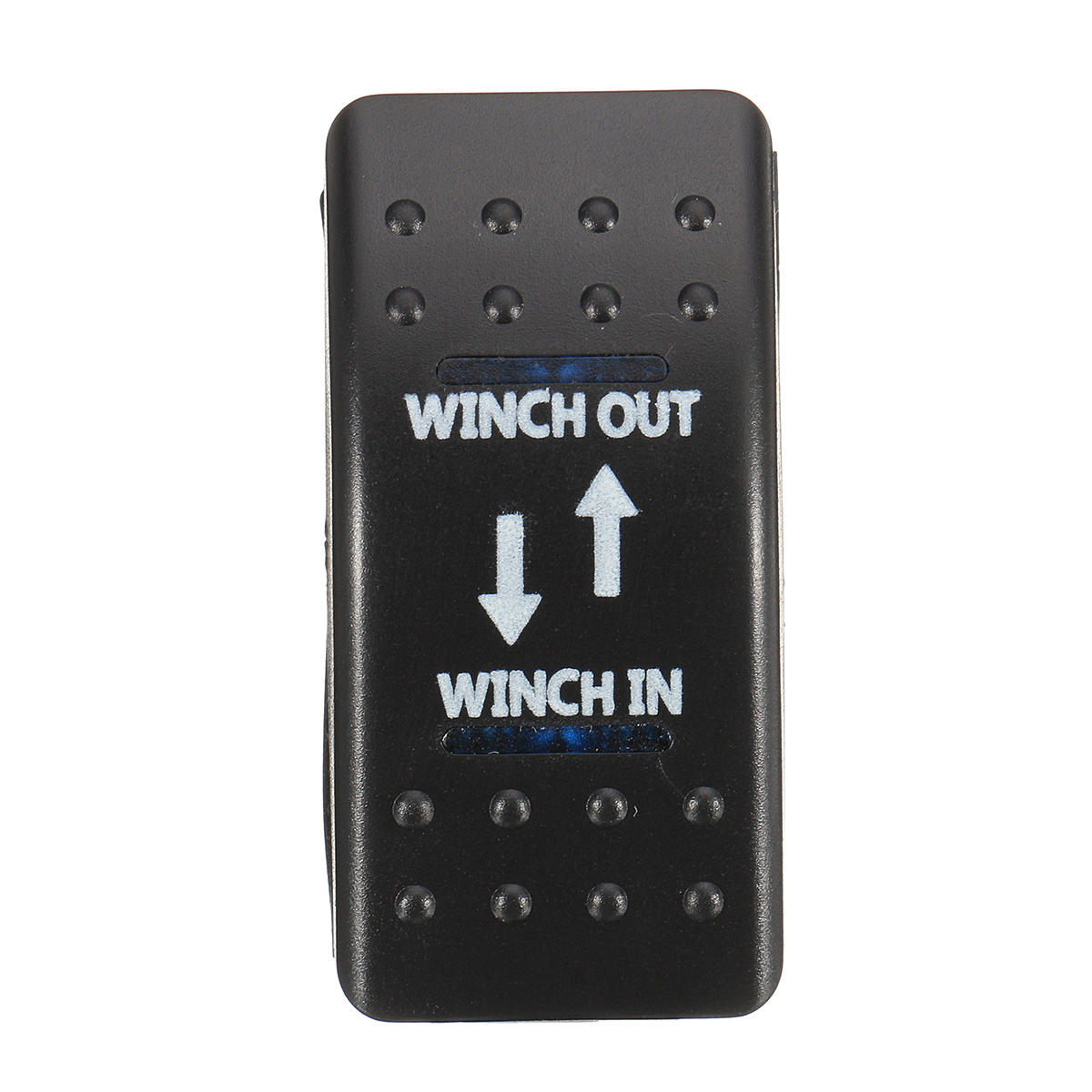 Description: Black hard surface rocker Laser etched WINCH IN WINCH OUT Legend Single upper light Single lower light Upper light is ON when the switch is pressed UP Lower light can be wired to separate dash light circuit Waterproof rating of IP66 No rear barriers between terminals Wiring diagram is not supplied Specification: Model: 569952 Product Name: Rocker Switch Color: Black Rated: 12V 20A , 24V 10A DC Pin Number: 7 Pins Light Color: Green, Yellow, Blue, Red, White Please let us know the color youd like. You can leave the message on your Paypal note or Email to tell us. Otherwise well send at random. Type: ON -OFF- ON switch Switch Operate Type: Momentary Switch Cutout dimensions are 0.83 by 1.45 21mm x 36.83mm Face surface size: 0.90 x 1.92 49mm x 23mm Note: 1. No instructions included.Professional installation is highly recommended 2. Please check the size measurement chart carefully before making payment. 3. Please allow 0.5-1 inch difference due to manual measurement. 1 inch so 2.54cm 4. The color of the actual items may slightly different from the listing images due to different computer screen, thanks for your understanding. Package Included: 1 X Rocker Switch,,,,,,,,,