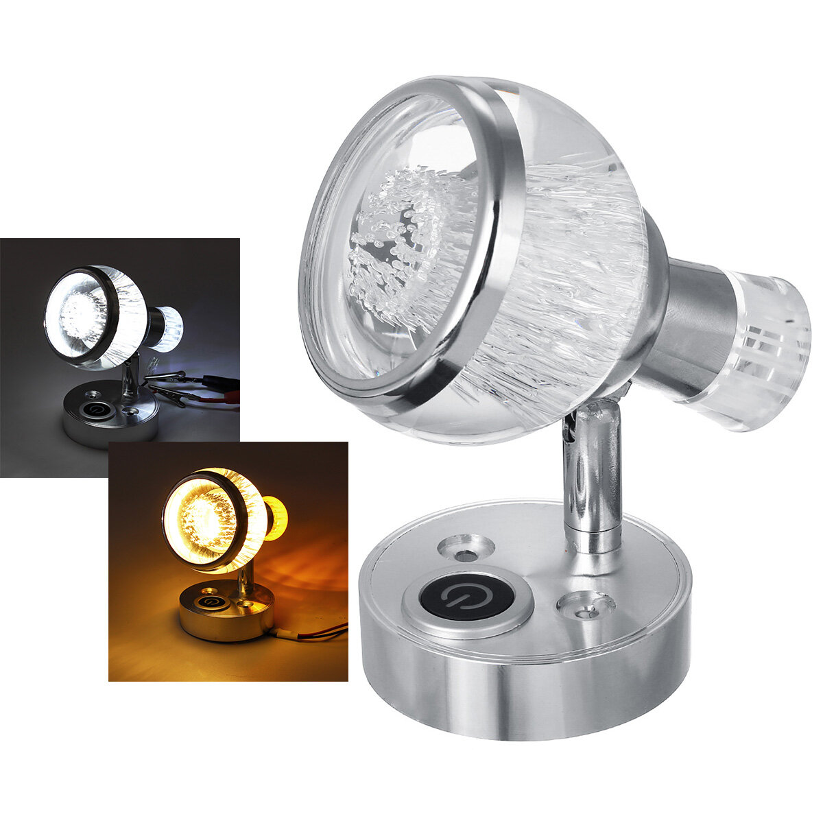 Specification : Product name : spot light Material : Aluminum and Acrylic Housing color : Black Input Voltage : 12V Power : 3W Lumens : 240LM Light color : white , warm white Color temperature : white 6000K , warm white 3000K Lifespan : 30,000 hours Size : as the pictures shown Application : kitchen , bedside , reading desk , RV , caravan , truck , boat etc. Qty: 1pc Features : 1.High quality aluminum construction, switched on lamp base, concealed wall fixings. 2.Perfectly light up your bedside, reading desk or where a multi-angle illumination is needed. 3.This flexible plug-in wall light offers stylish task lighting. Great for placement beside the bed or couch as a reading light . 4.The head of spot light can be rotate 180 & 360 degrees.Just install the light on the surface with screws. Note : 1.Please allow 0.5-1 inch difference due to manual measurement. 1inch so 2.54cm . 2.The color of the actual items may slightly different from the listing images due to different computer screen, thanks for your understanding. 3.There is no instruction included.If you want to know how to use or install it,please contact us by Email. Package included : 1 x led spotlight 2 x screw