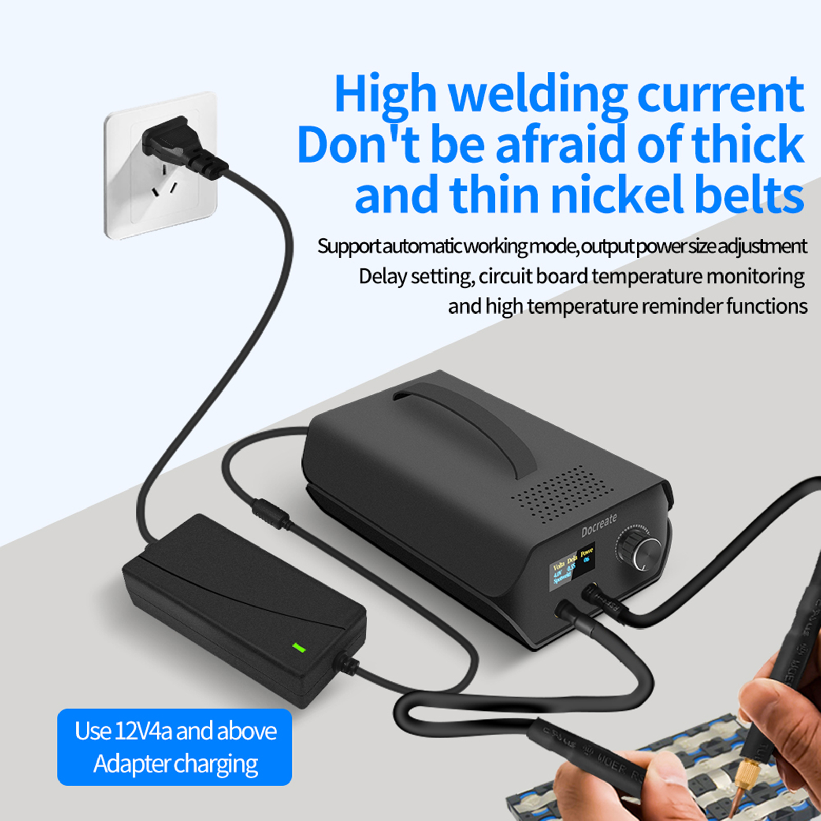 Capacitors are not batteries. Capacitors are characterized by the ability to instantly release a powerful current that instantly melts metal for welding within milliseconds. Capacitors can be stored at zero voltage. Long-term use requires no maintenance, no memory effect. Easily weld 0.2mm pure nickel, 0.3mm nickel plated, 0.4mm stainless steel, the welding is bright but not black. Automatic welding can be adjusted in 0.5-7 seconds, and the welding power can be adjusted in 1-110 steps.