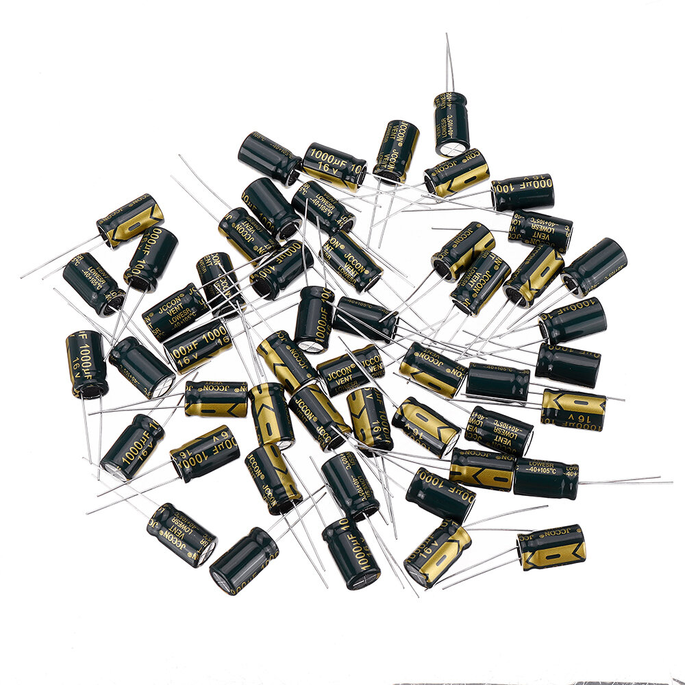 . Specification: Capacite: 1000 uF Tension: 16 V Diametre: 10 mm Hauteur: 16 mm Quantite: 150 pieces Emballage inclus: Condensateur electrolytique 150 x 16V 1000uF 10 X 16 mm