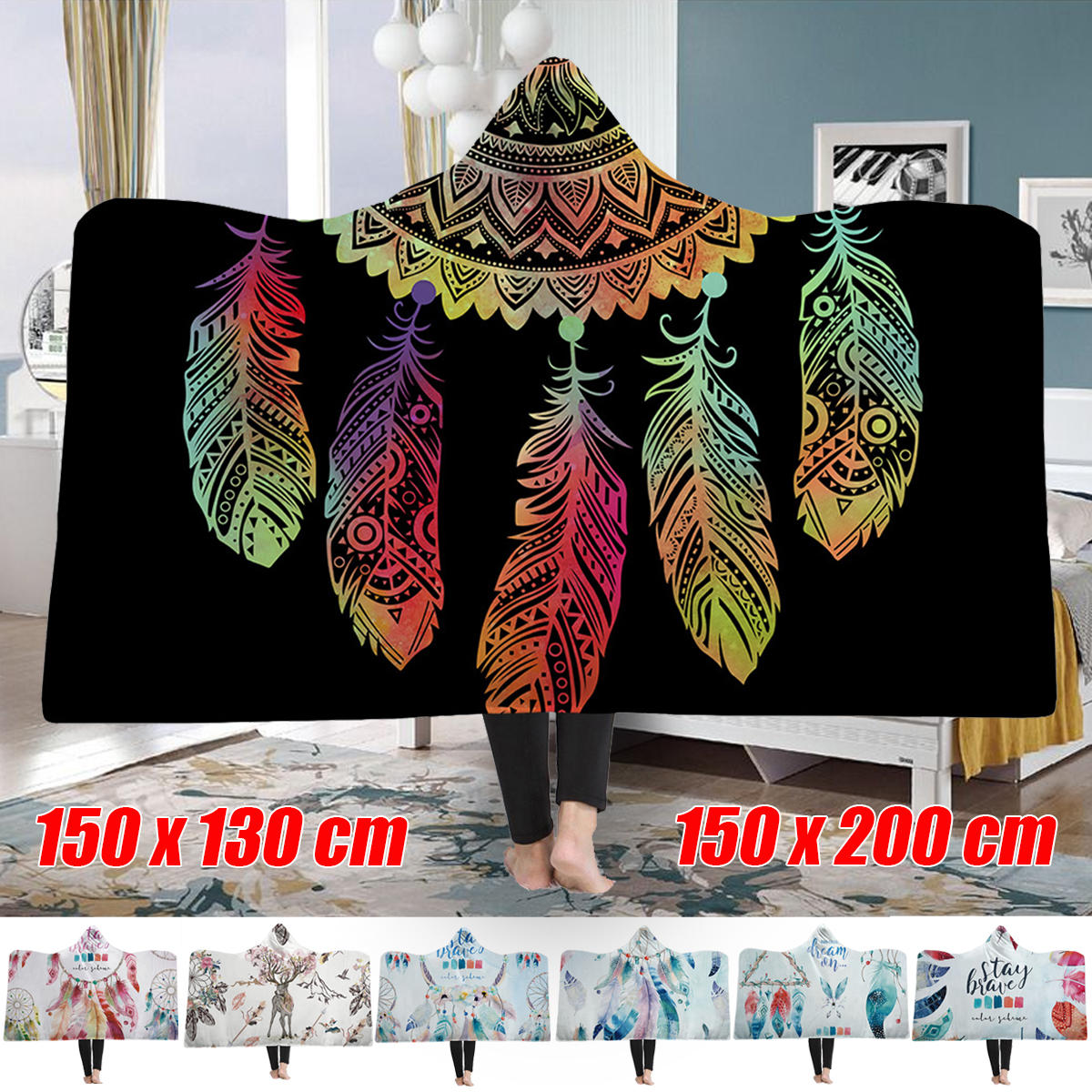 Hooded Blanket Warm Wearable Plush Mat Thick Nap Soft Blankets