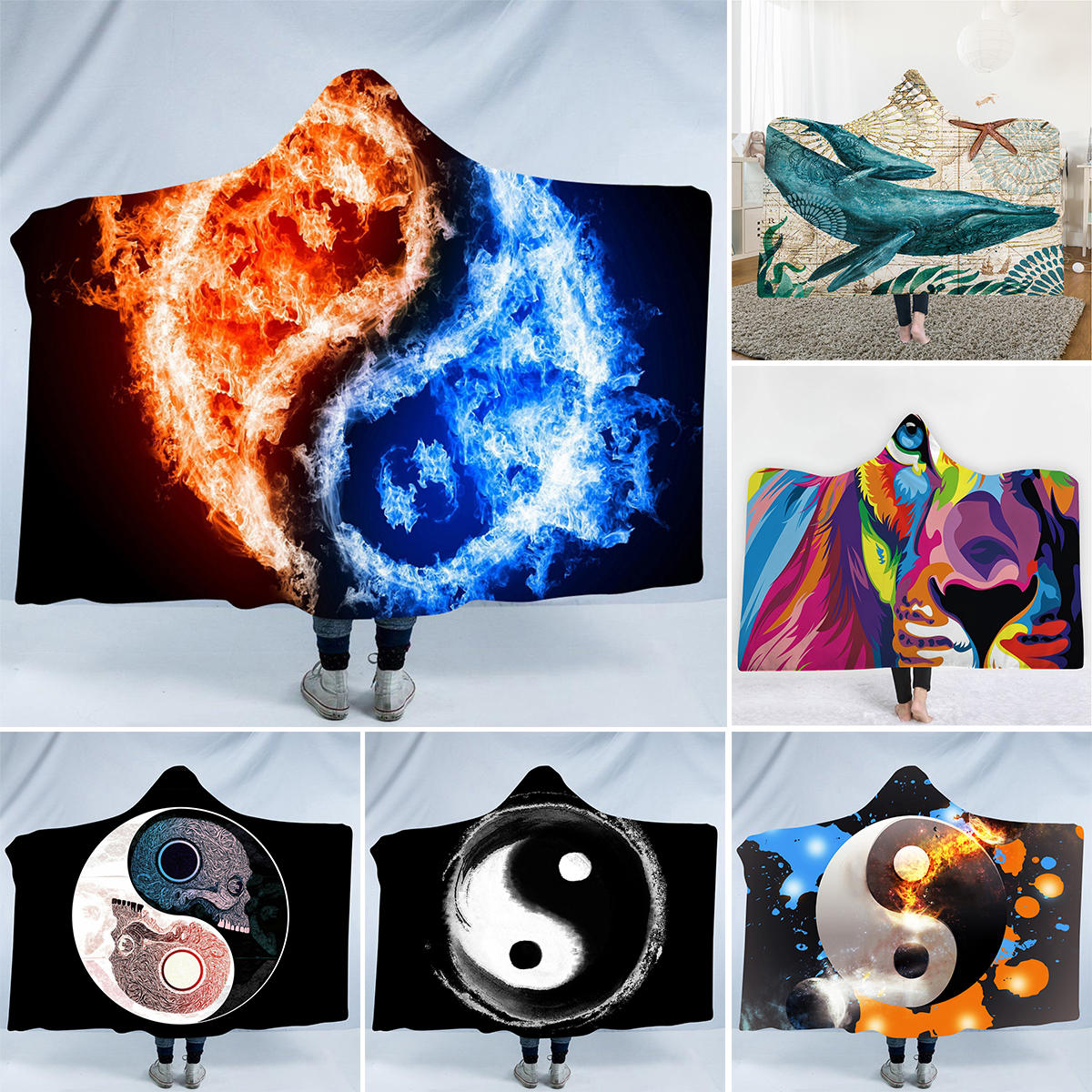 Description :Hooded Blanket Warm Wearable Plush Mat Thick Nap Soft Blankets