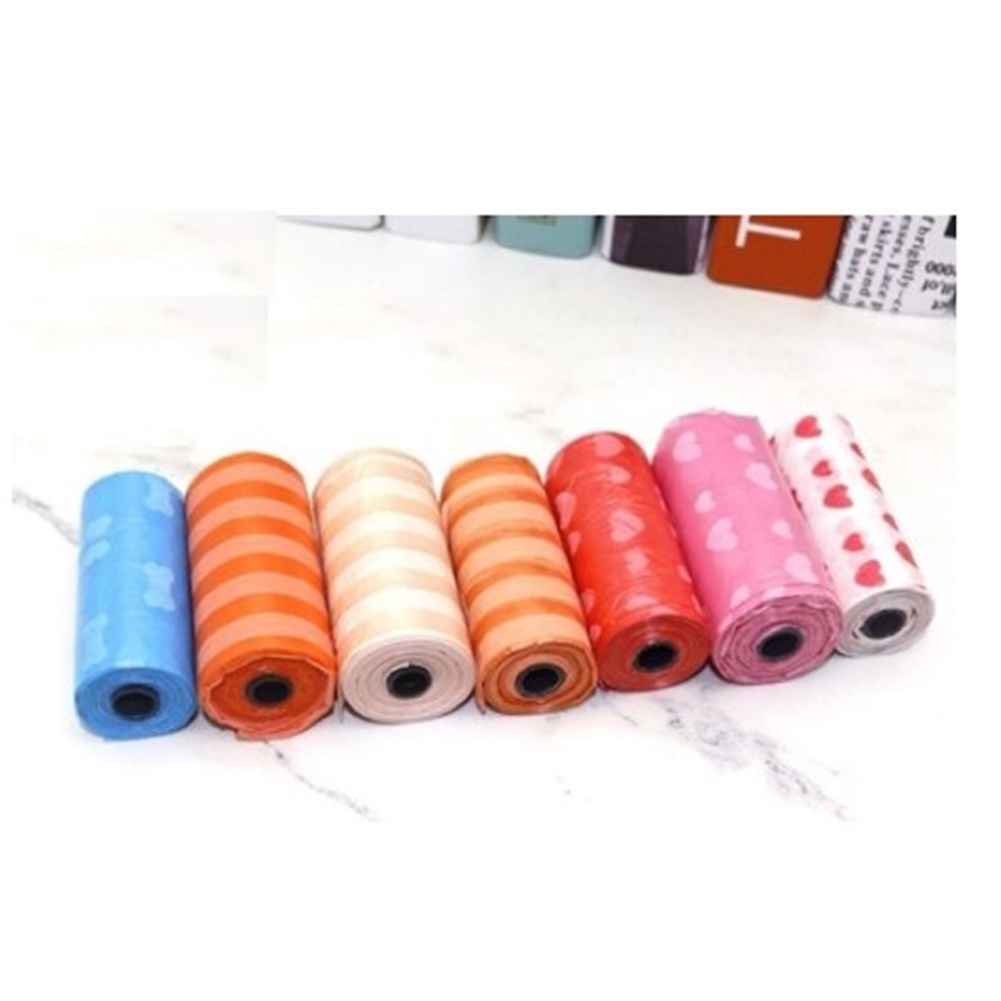 15pcs/roll Cartoon Print Garbage Bag Trash Storage Container Pet Supplies Color mixing