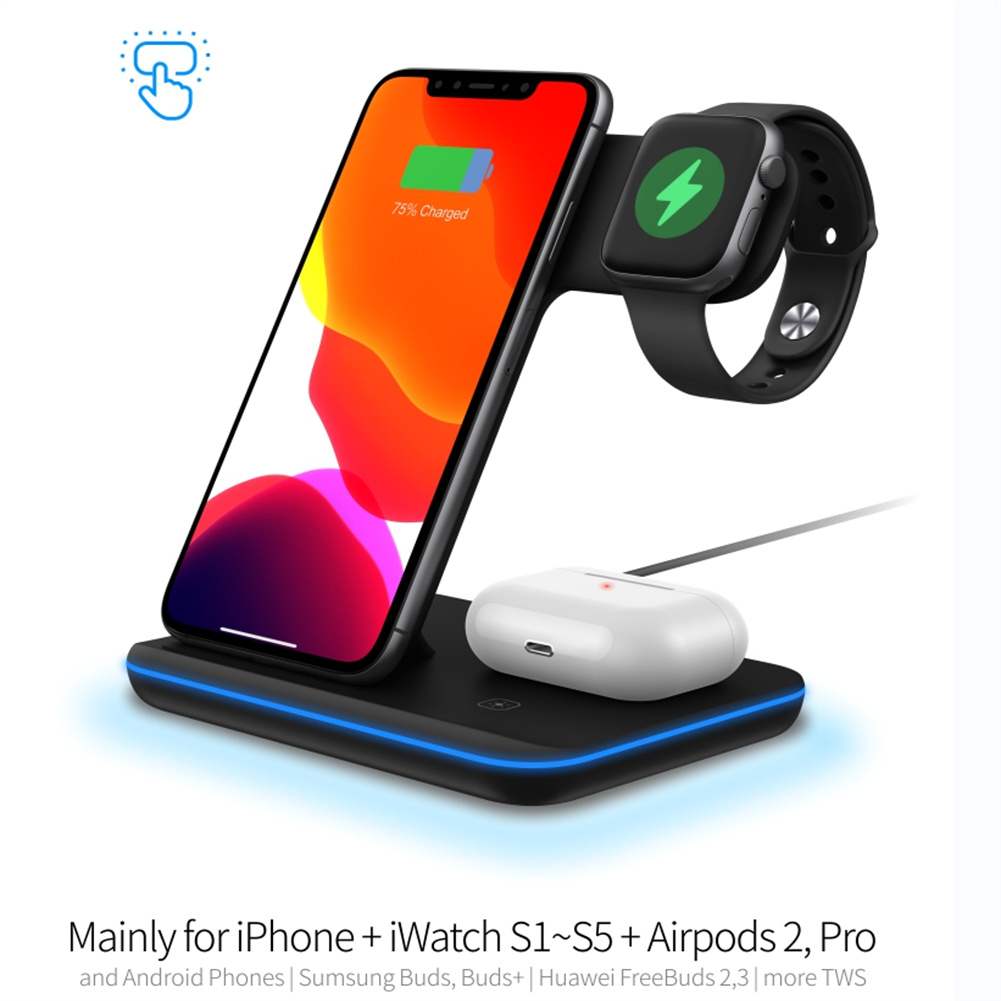--The 3-in-1 wireless charging station can charge compatible for mobile phone / iwatch 6 / SE / 5 / 4 / 3 / 2 / airpods at the same time. --The multifunctional design provides you with a clean charging stand. --3-in-1 wireless charger only needs one charging cable, which makes your room or desk look more concise and tidy. --So as to bring more convenience to your life. --Size: 13.6 x 10.1 x 13.6cm.