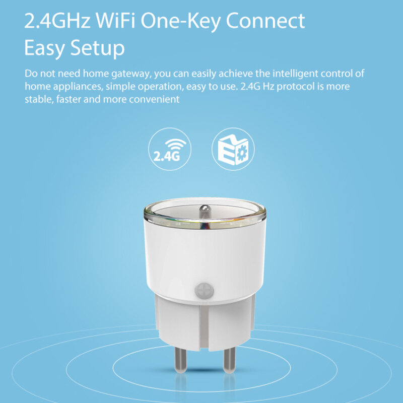 . Traits: Prise d'alimentation WiFi RF Fonction principale: une touche ON / OFF des appareils ; Telecommande ; Chronometrage ON / OFF ; Definir les teches retardees 1. Soutenir le reseau WiFi 2. Prise en charge de la technologie reseau SmartLink, connexion rapide, installation facile 3. Telecommande universelle Wi-Fi 4. Contrelez e distance vos appareils electromenagers avant votre arrivee e la maison 5. Scens auto-set, personnaliser personnellement 6. Applications gratuites pour le systeme iOS et Android 7. Conception compacte pour economiser votre espace 8. Ideal pour les appareils electromenagers telecommandes e la maison ou au bureau 9. Peut contreler le lien avec d'autres appareils wifi Specification: Telecommande mise sous / hors tension de l'appareil via l'application Fonction de chronometrage. Tension nominale: AC 85-230V e 10%; 50 / 60Hz Courant evalue: 16A Type sans fil: 2,4 GHz Protocole: IEEE 802.11b / g / n Distance Wifi: 45m Application gratuite: Tuyasmart ou Smart Life. Systemes de support: Android et IOS. Fonctionne avec Alexa Echos et google home. Taille du produit (D * W * H): 43 x 43 x 65 mm Emballage inclus: 1 x prise intelligente