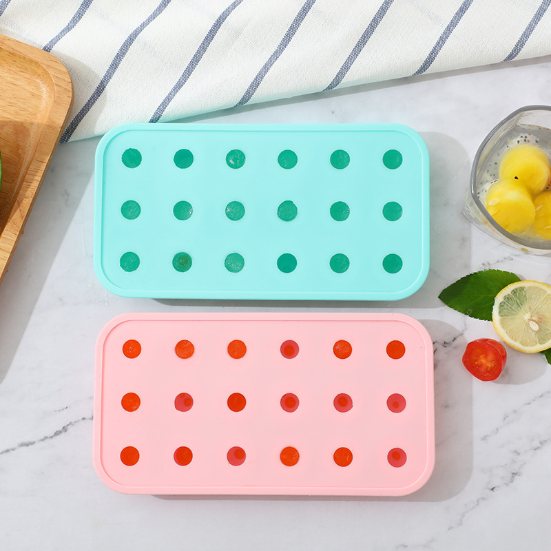 18 Grids Ice Cream Mold Silica Gel Box Kitchen Bar Homemade Hockey Ball Moulds 17mm waterdrop pink + dropper