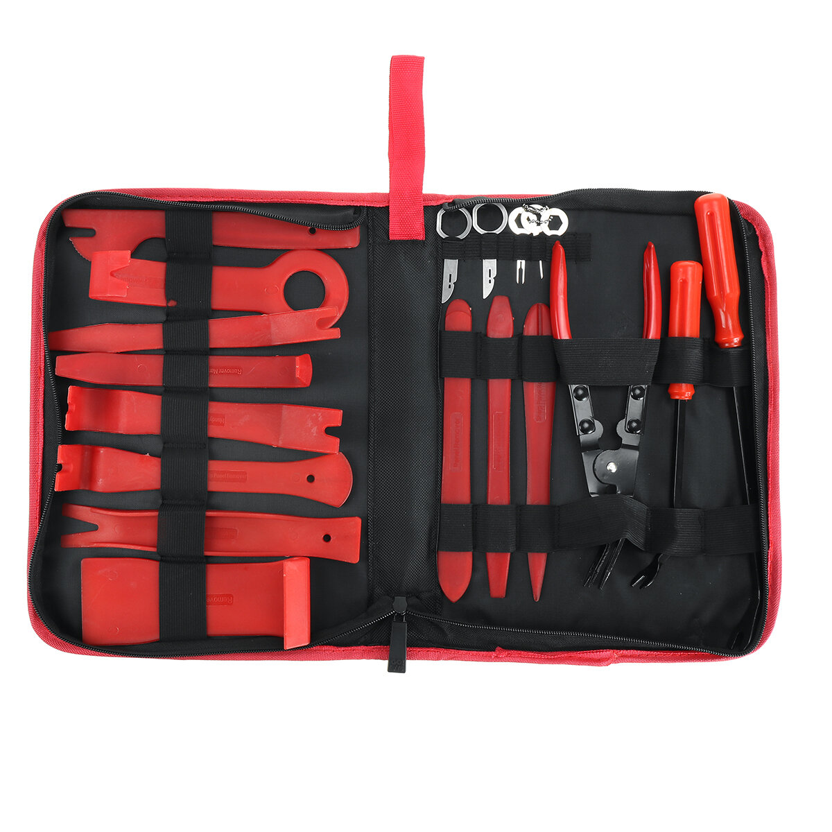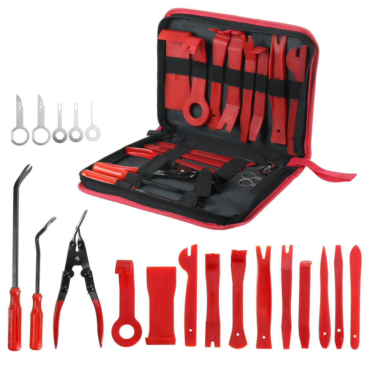 This professional car trim removal kit set consist of 19 pieces multi-functional tools to meet your diffreent need, it's perfect for dismantling of car audio , radio, door panel,dashboards,fixing clips, roof lights, windows, interior accessories,etc.. With an ergonomic design, it can easily hold in hand to fit hard to reach spaces and effectively help to save effort when you remove and install the devices.