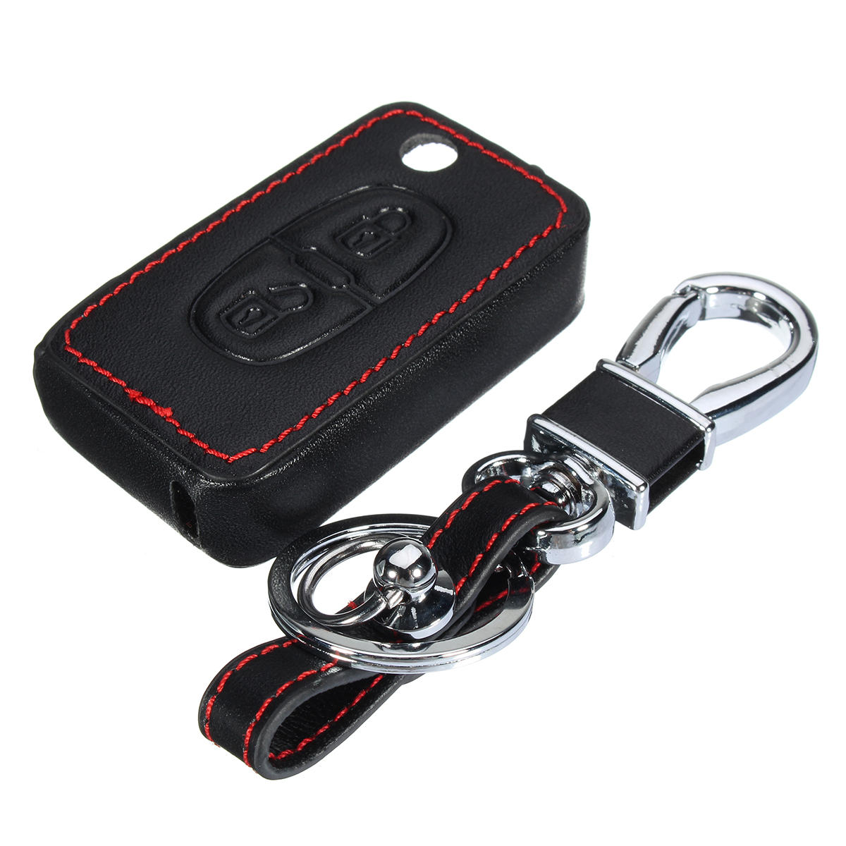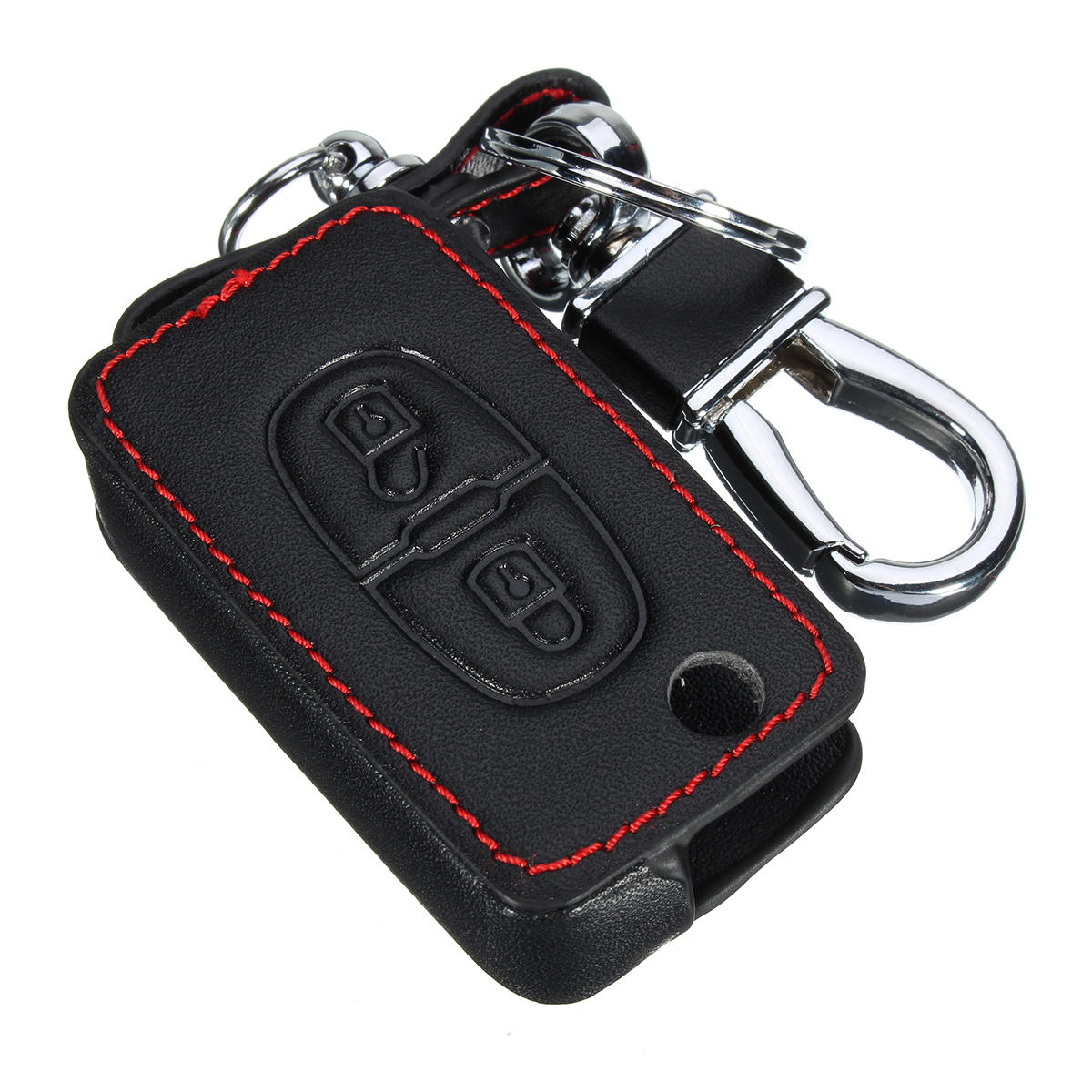 2 Button PU Leather Key Chain Case Cover for Peugeot 301 308S 408 508 2008 3008