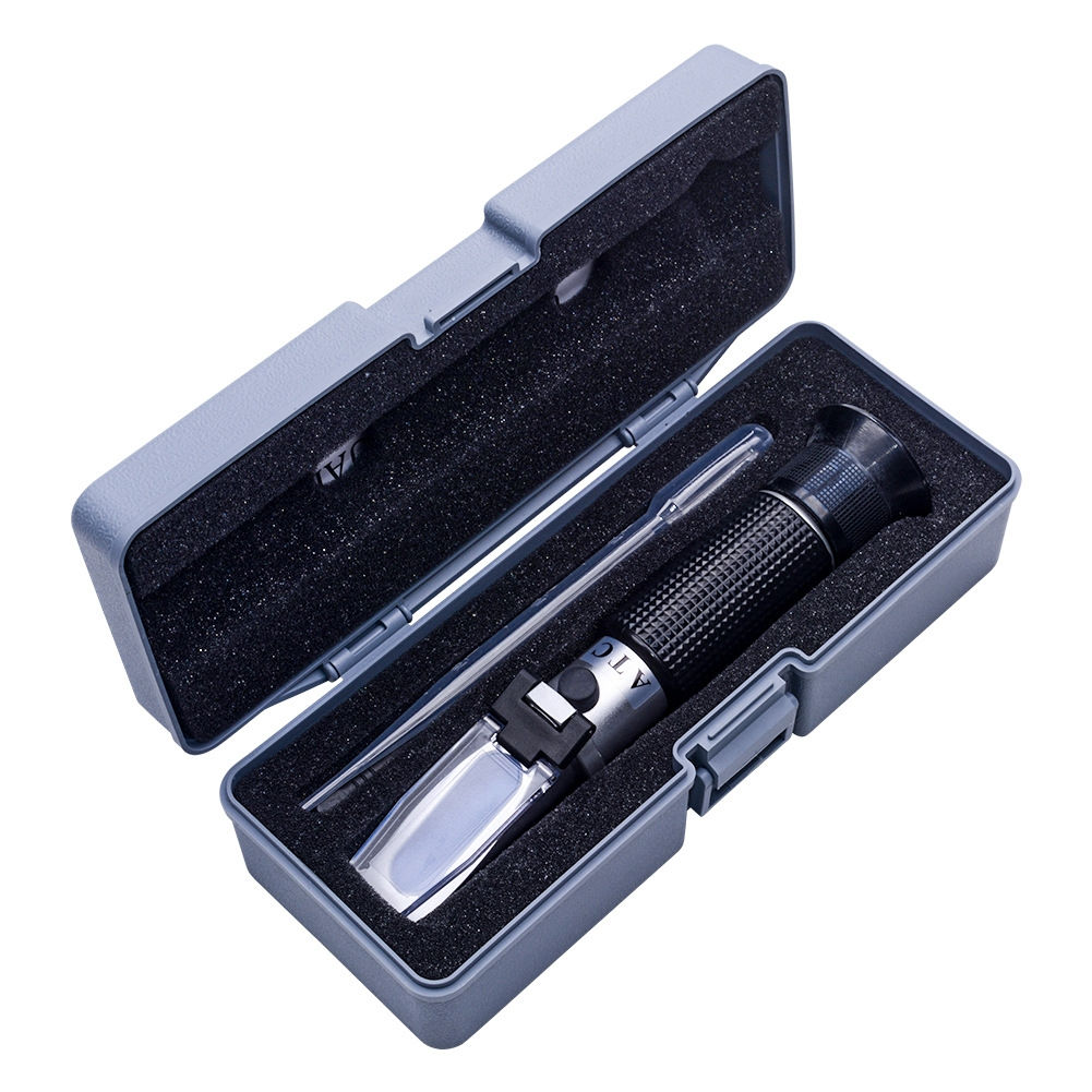 The refractometer is designed according to the principle that liquids with different concentrations have different refractive indices, and it is fast and accurate. Automatic temperature compensation, the temperature of the water sample will not affect the reading. Aluminum alloy structure, light weight, small size, easy to carry. The soft silicone handle provides a nice touch. High-definition eyepieces make your vision wider and your reading more accurate.