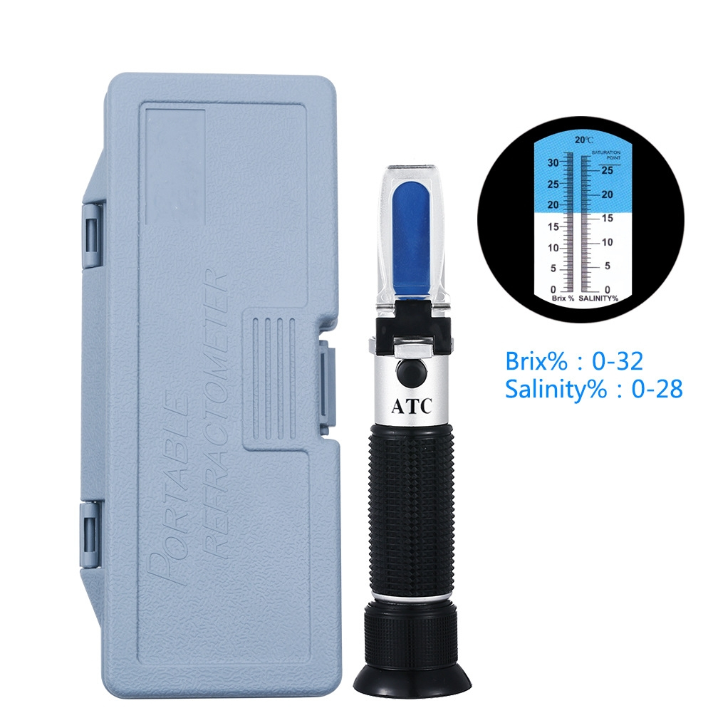 2-in-1 Optical Refractometer 0-32 Sugar Meter/0-28 Salinity Meter Automatic Temperature Compensation Fructose Brine Tester