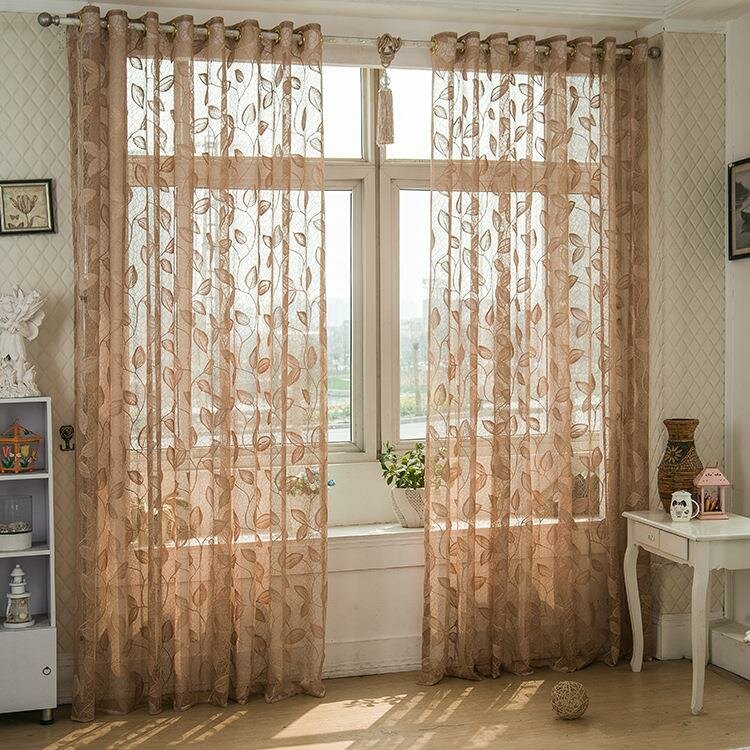Description : 2 Panel Breathable Half Black-out Sheer Curtains Window Screening Good pervious to light, UV-Protection, heat-insulating.Make your room more cozy and romantic. Protect your skin from UV rays.Tones are soft and translucent.You can enjoy the natural light. Specification:Color: Light coffee, GrayCraft: Warp knitting, LaceMaterial: Polyester fiberPattern: LeavesStyle: Simple Modern EuropeSize: W40 x L84Inch, W52 x L84Inch, W63 x L104Inch Installation type: