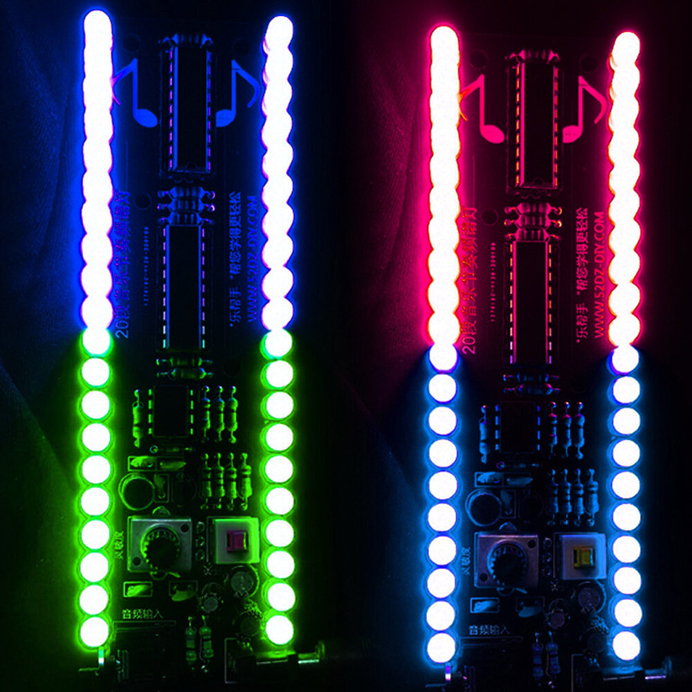 20 segments LED lumiere du spectre de la musique bricolage Kit electronique Kit de production d’indicateur de rythme de commande vocale Double rangee 127x39mm – pieces colorees