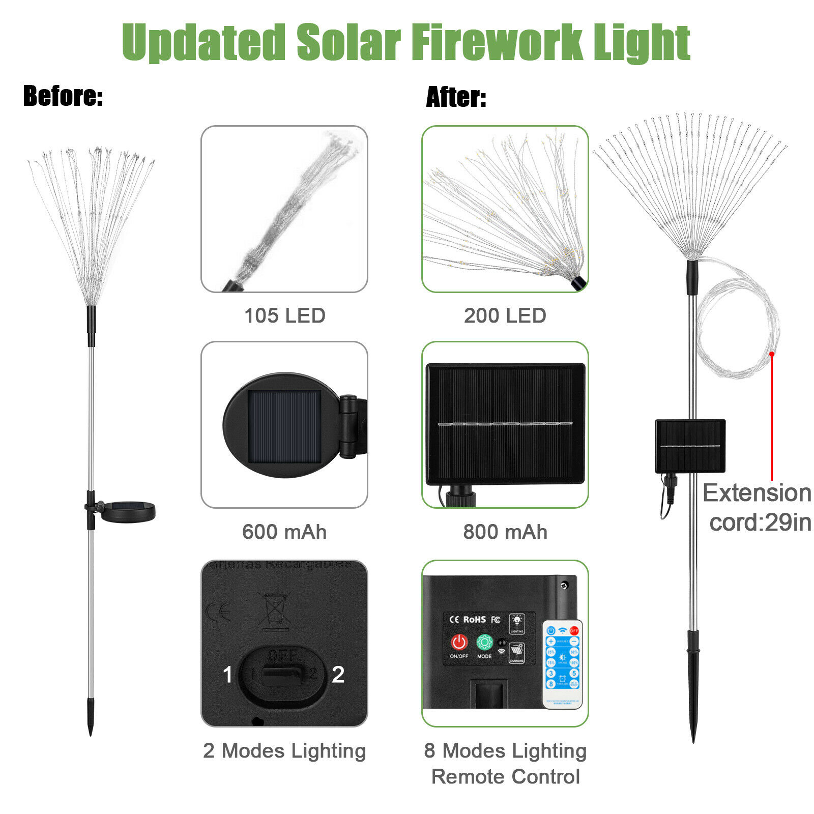200 Led Solar Firework Lights 8 Modes IP65 Colorful Waterproof Outdoor