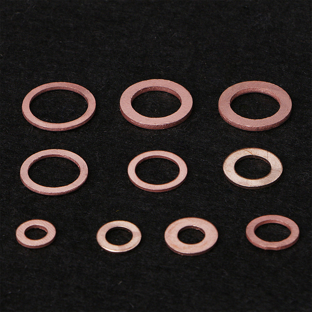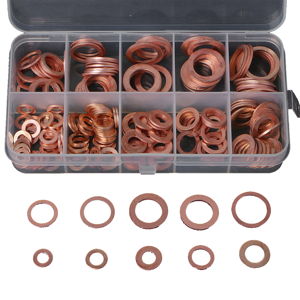 Made of high-quality copper, melting point up to 1083 It has good electrical and thermal conductivity. All contained in a compact clear compartment plastic box Ideal for sump plugs, water, fuel and hydraulic fittings Oil pan plug gaskets for all types of engines including automotive, marine, generator, machinery and factory