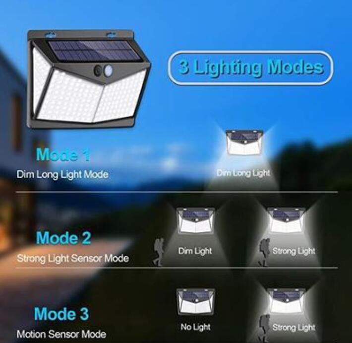 208LEDs Solar Powered Wall Light Motion Sensor Outdoor Garden Security Lights