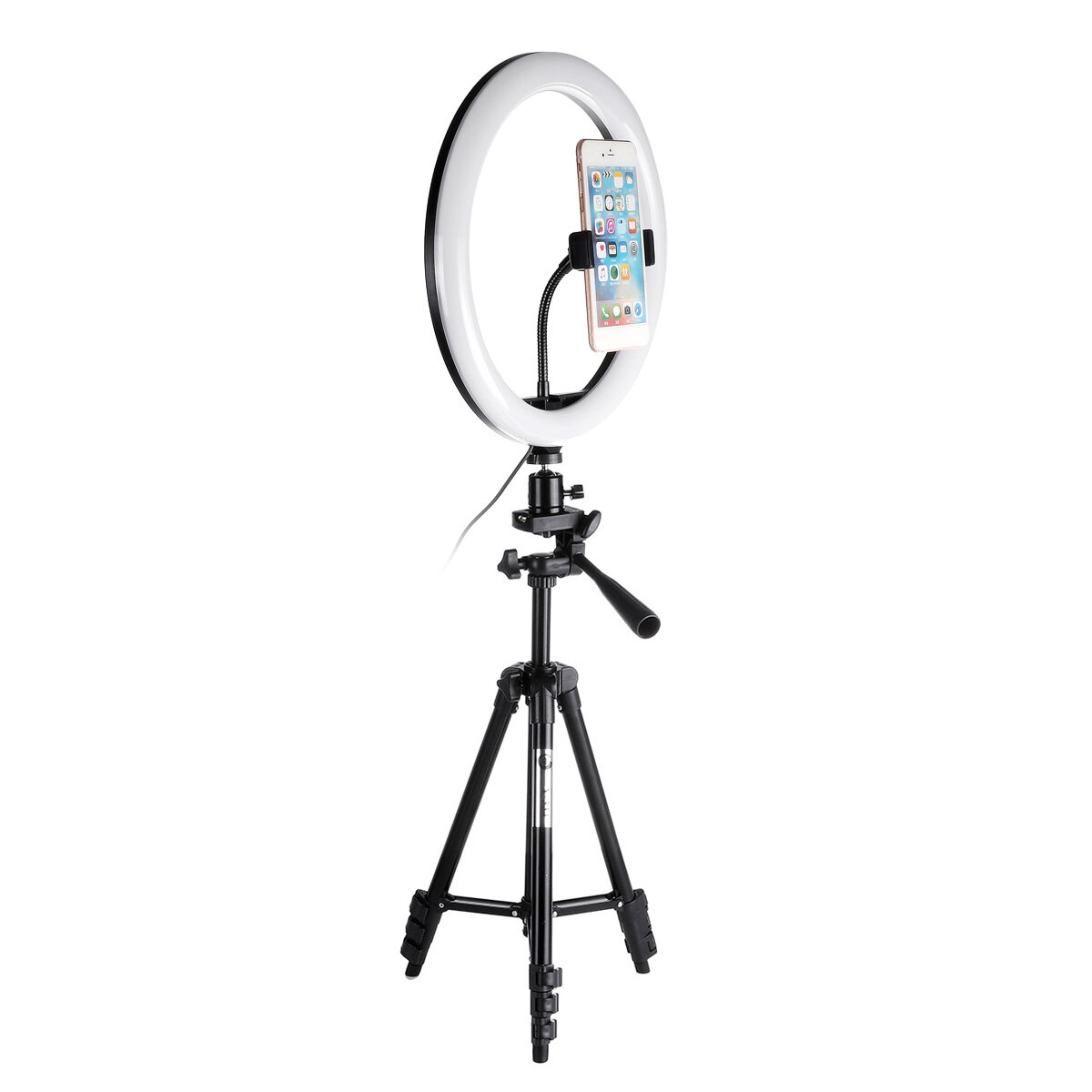 Anneau dimmable: modes d'eclairage 3 couleurs: blanc / blanc chaud / lumiere chaude, anneau de 10 pouces LED LED lumiere 3500-6500K, et 10 luminosite reglable pour chaque couleur. Une luminosite et des couleurs dimmables parfaites repondent e tous vos besoins. C'est le meilleur eclairage annulaire ideal pour le streaming, l'eclairage photographique, le selfie sur smartphone, l'enregistrement video YouTube, etc. il peut egalement etre utilise comme lampe de bureau pour votre lecture ou votre maquillage