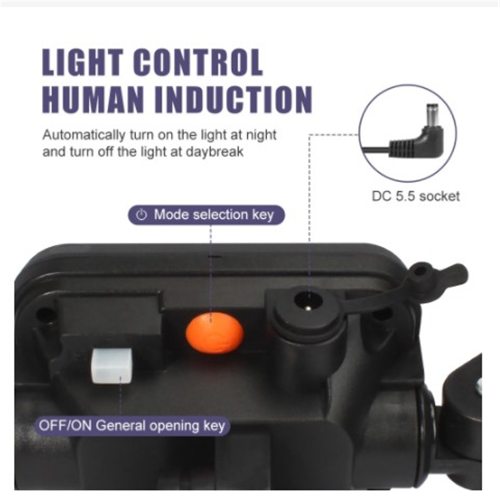 Outdoor and indoor solar lights: solar panels and lamp bodies are designed separately, with a line of about 5m IP65 Waterproof: it can withstand all kinds of bad weather The sun light fixture is made of high impact ABS plastic Adjustable lamp head: The adjustable lamp head can be moved up and down and horizontally. Wide illumination angle up to 270° and detection distance of 16-26 feet suitable for corridor corridors, garden gates, roofs, courtyard walls,shop windows, shops, homes