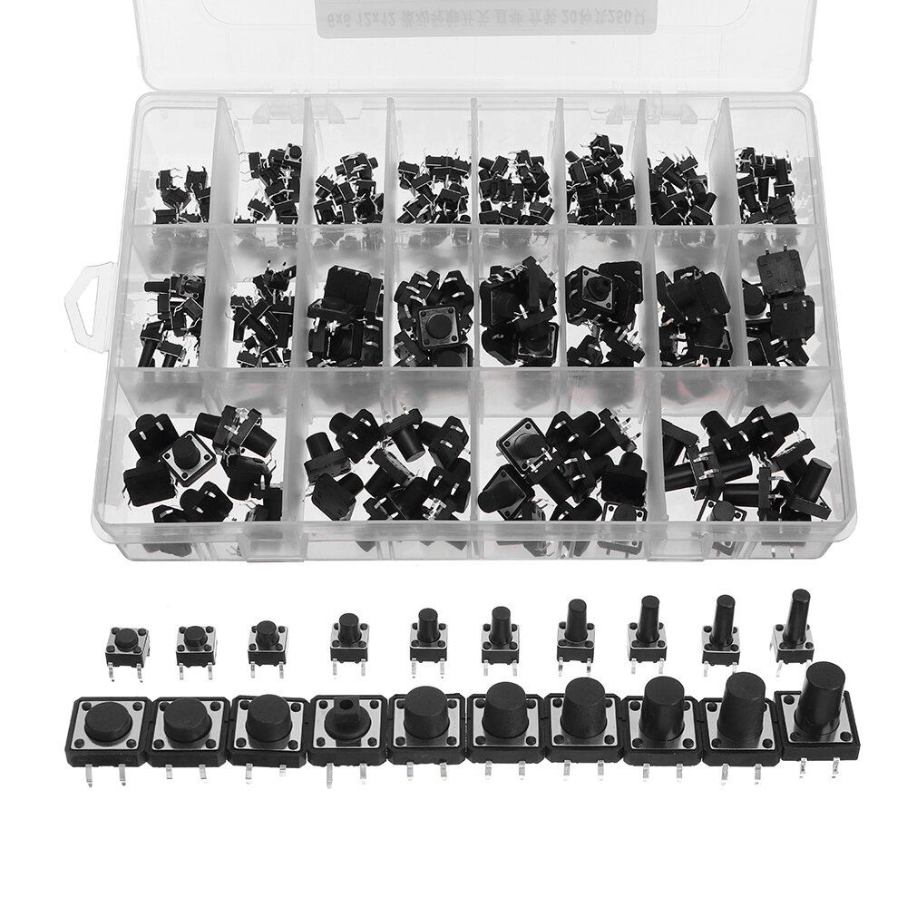 250 pieces 6 x 6 mm 12 x 12 mm 20 valeur 4 broches interrupteur e bouton-poussoir tactile Micro Kit d’assortiment de Tact momentane