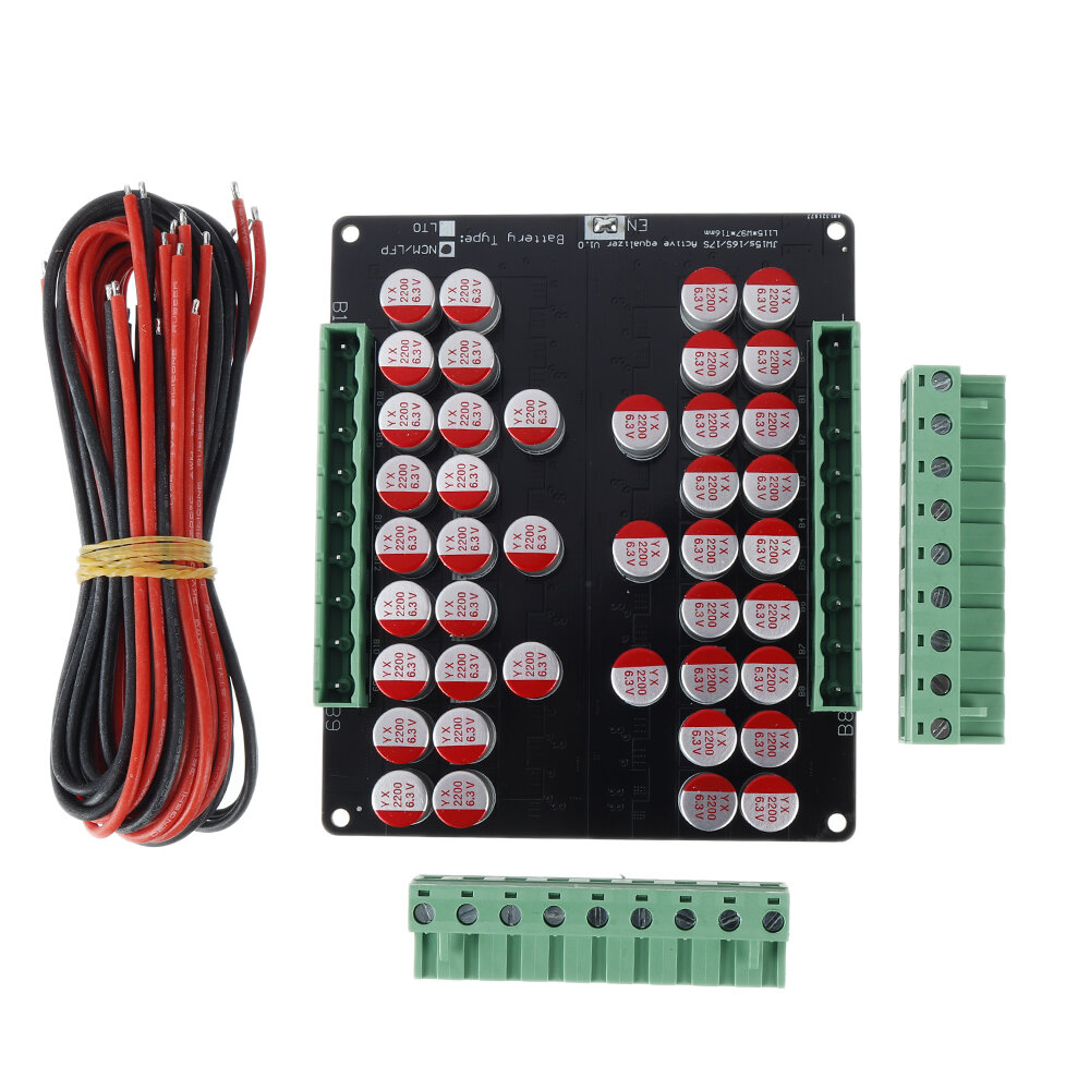. Parametres de la plaque d'egalisation en titanate de lithium Tension de demarrage equilibree: 2.0v-2.8v Tension de terminaison equilibree: 1,9 V (entree en etat de veille e sous-tension) Precision de l'equilibre: 5mv Courant d'equilibrage maximal: erreur de groupe 0.1v1a; 0.5v3.5a; 1.0v5.5a (test de ceble 18awg 30cm) Courant de sommeil: = 1mA 5s-lto courant statique e l'etat complet (2.8V * 5cell) 14V 12mA 6s-lto courant statique plein etat (2.8V * 6cell) 16.8v 15mA 7s-lto courant statique plein etat (2.8V * 7cell) 19.6v 12mA 8s-lto courant statique e l'etat complet (2.8V * 8cell) 22.4v 12mA Aucune alimentation externe n'est necessaire et l'ensemble du groupe est equilibre par le transfert d'energie interne de la batterie. Temperature de l'environnement de travail: 0 ? -60 ? Parametres generaux du lithium ternaire / phosphate de fer lithium Tension de demarrage equilibree: 3.0v-4.2v Tension de terminaison equilibree: 2,9 V (entree en etat de veille e sous-tension) Precision de l'equilibre: = 5mv Courant de sommeil: = 1mA Courant d'equilibrage maximal: erreur de groupe 0.1v1a; 0.5v3.5a; 1.0v5.5a (test de ceble 18awg 30cm) etat complet du courant statique 3S (4.2V * 3cell) 12.6V 12mA etat complet du courant statique 4S (4.2V * 4cell) 16.5v 15mA etat complet du courant statique 5S (4.2V * 5cell) 21v 15mA etat complet du courant statique 6S (4.2V * 4cell) 25.2v 15mA etat statique complet 7S (4.2V * 7cell) 29.4V 15mA etat complet de courant statique 8s (4.2V * 8cell) 33.6v 11ma etat de pleine puissance de la carte commune 15/16 / 17s (4.2V * 17cell * 2) 71.4v 10mA etat de pleine puissance de la carte commune 17/18/19 / 21s (4.2V * 21cell * 2) 88.2v 16mA Aucune alimentation externe n'est necessaire et l'ensemble du groupe est equilibre par le transfert d'energie interne de la batterie. Temperature de l'environnement de travail: 0 ? -60 ? Emballage inclus: 1 x Li-ion Batterie Active Equalizer Balancer