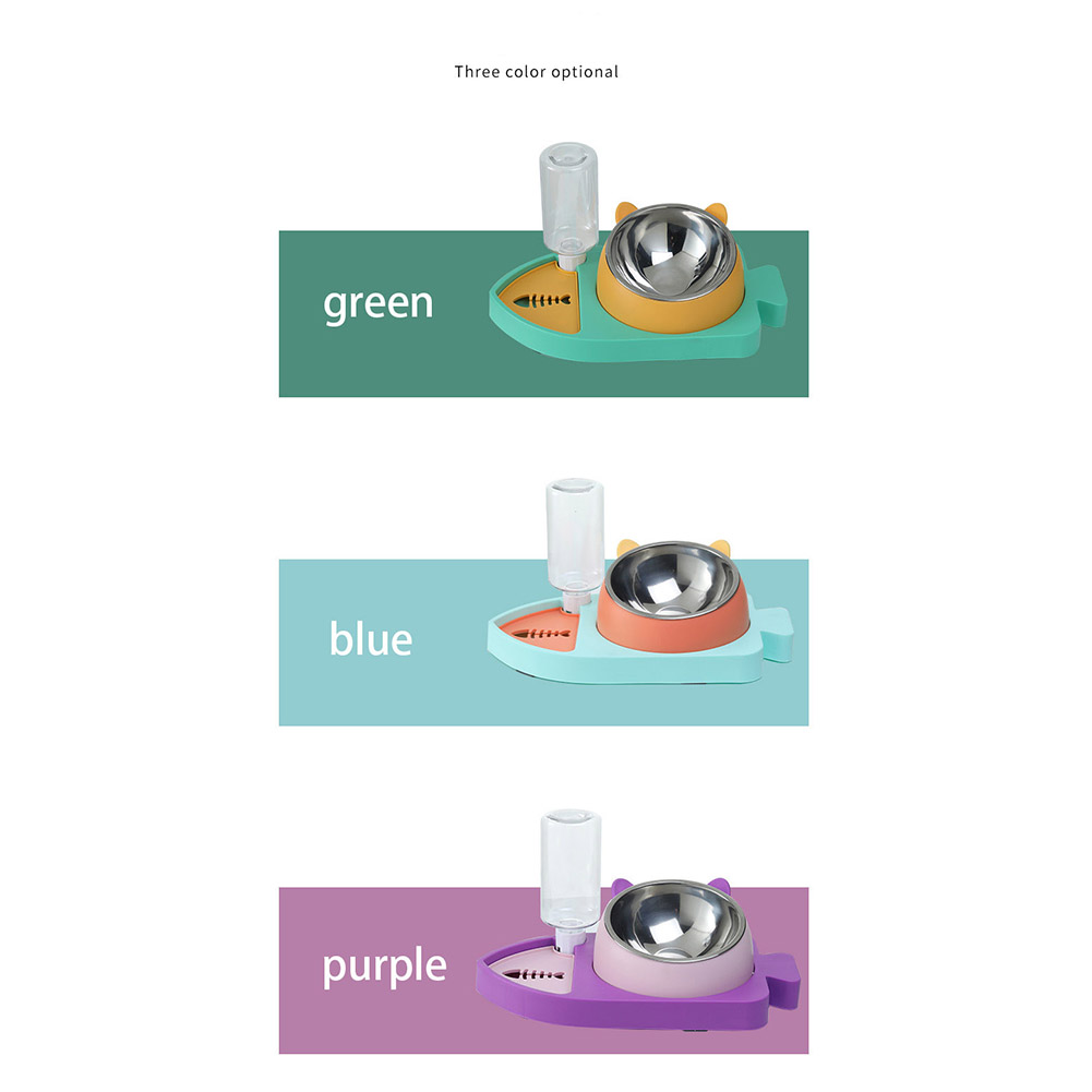3-in-1 Pet Feeding Bowl Water Dispenser Anti-choking Neck Guard Automatic Food For Dogs Cats fish shape bowl grey