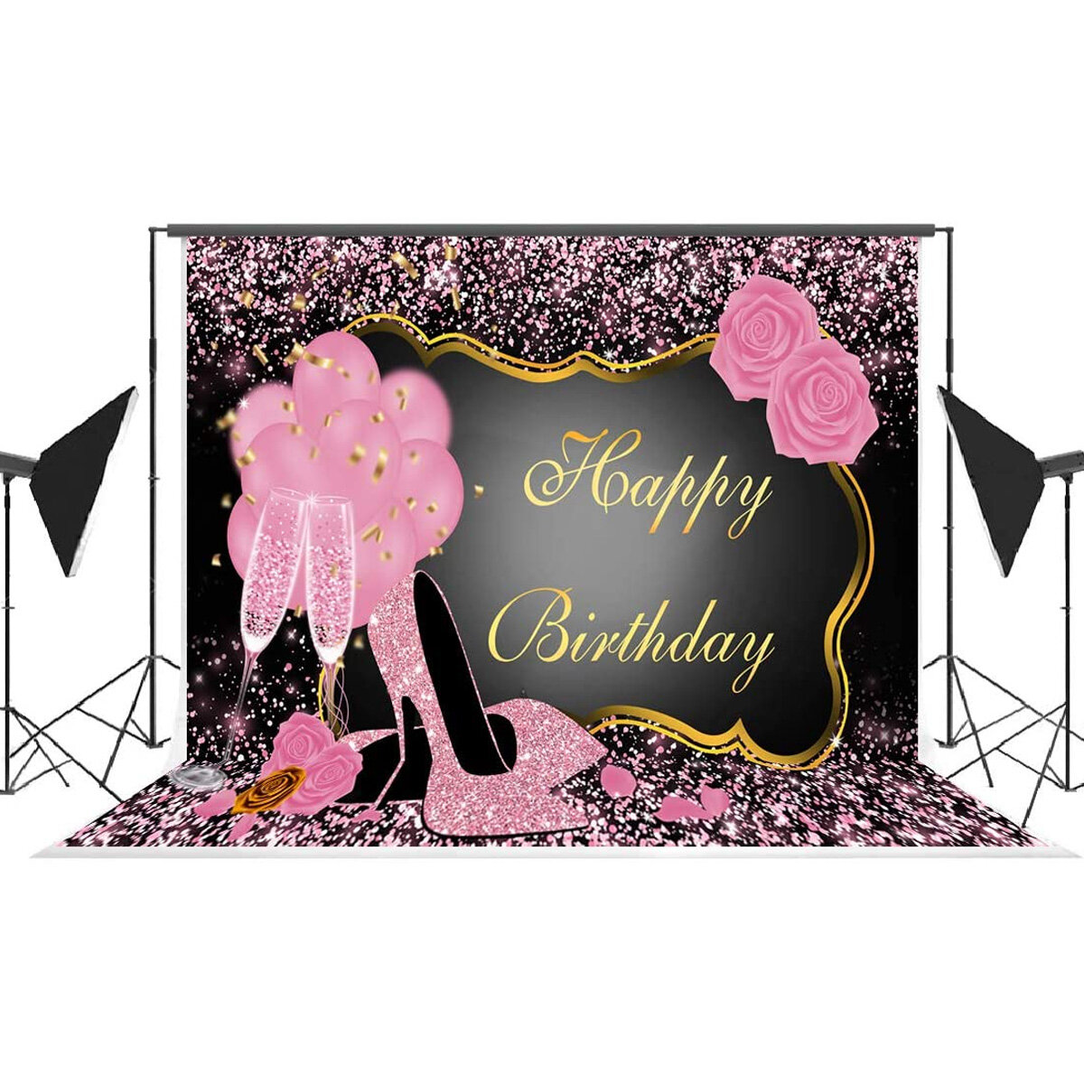 3 taille douce rose joyeux anniversaire toile de fond Rose brillant talons hauts photographie fond – 210 x 150 cm