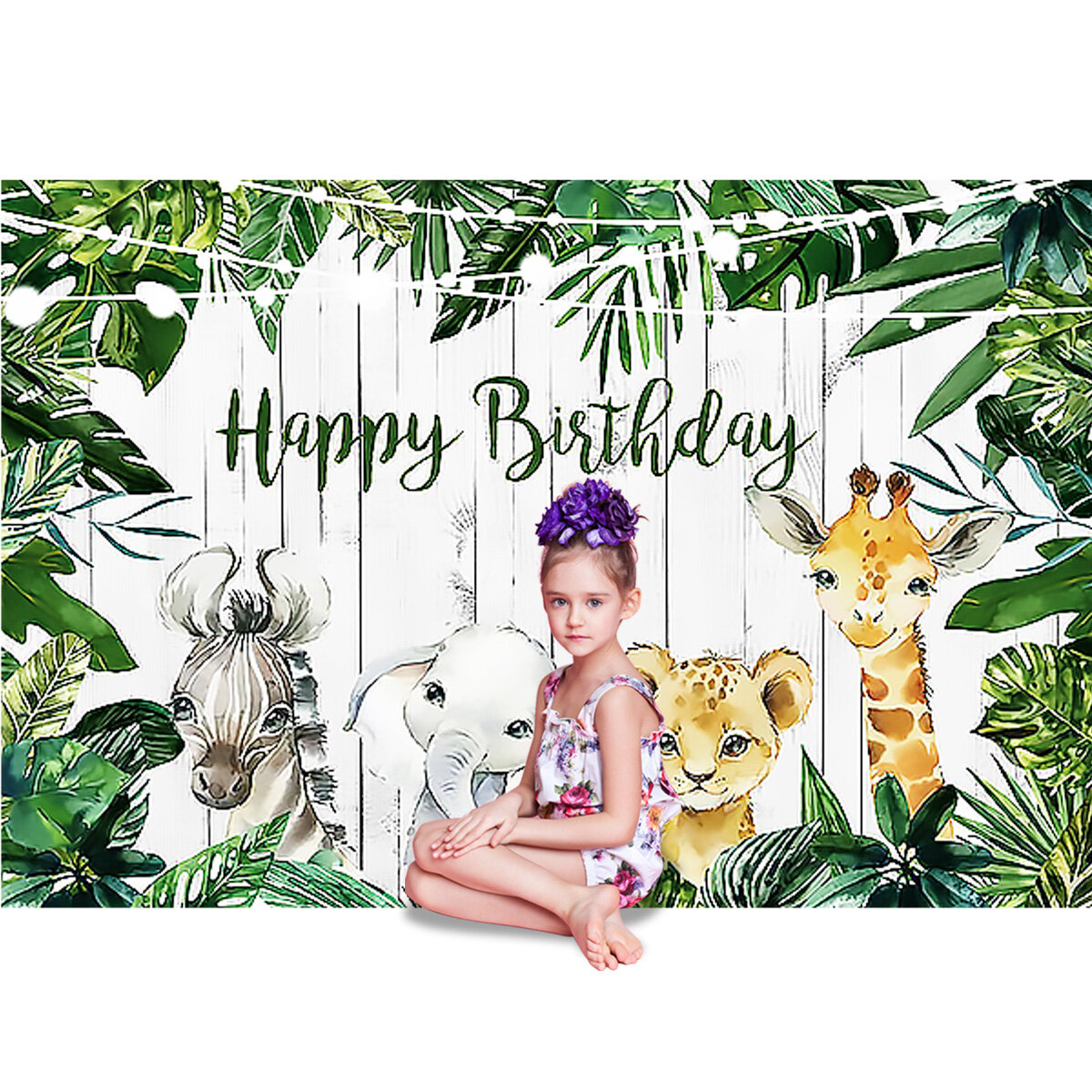 3 Taille Jungle Vert Foret Toile de Fond Joyeux Anniversaire Fond Photographie Woodland Party Prop – 2,7 x 1,8 m