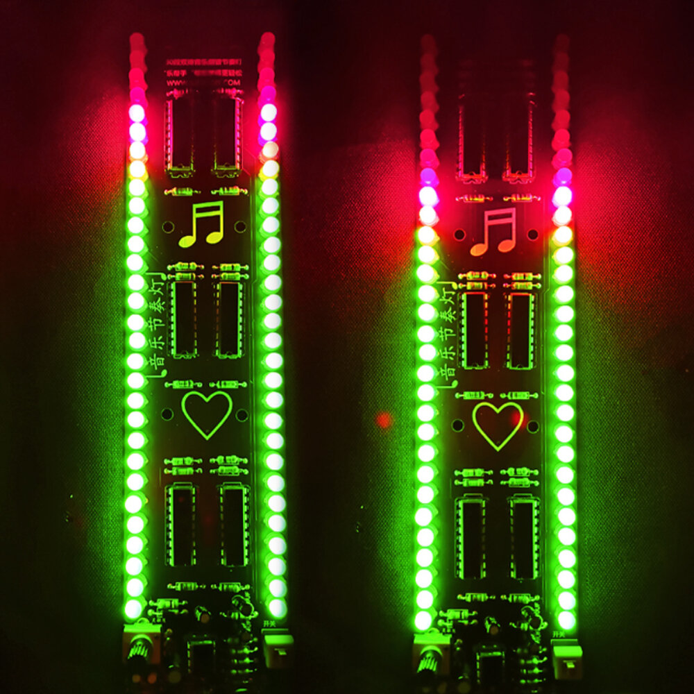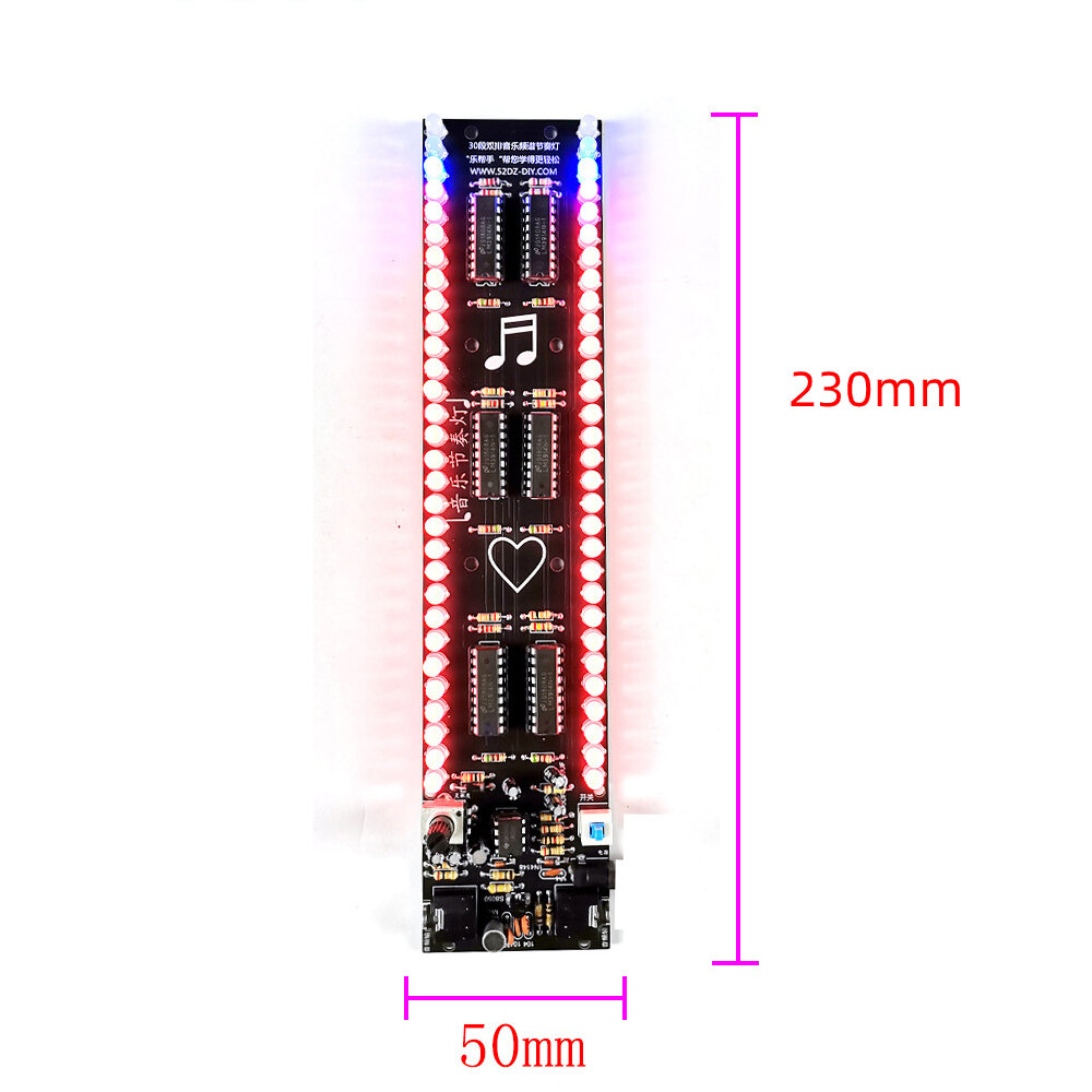 30 segments LED spectre de musique lumiere bricolage Kit electronique Kit de production d’indicateur de rythme de commande vocale e Double rangee – Rouge vert