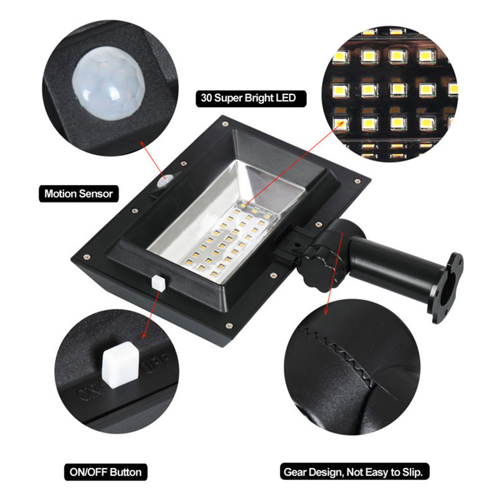 30LEDs Solar Light Outdoor Waterproof Human Body Induction Wall Lights for Garden Fence White Shell warm light