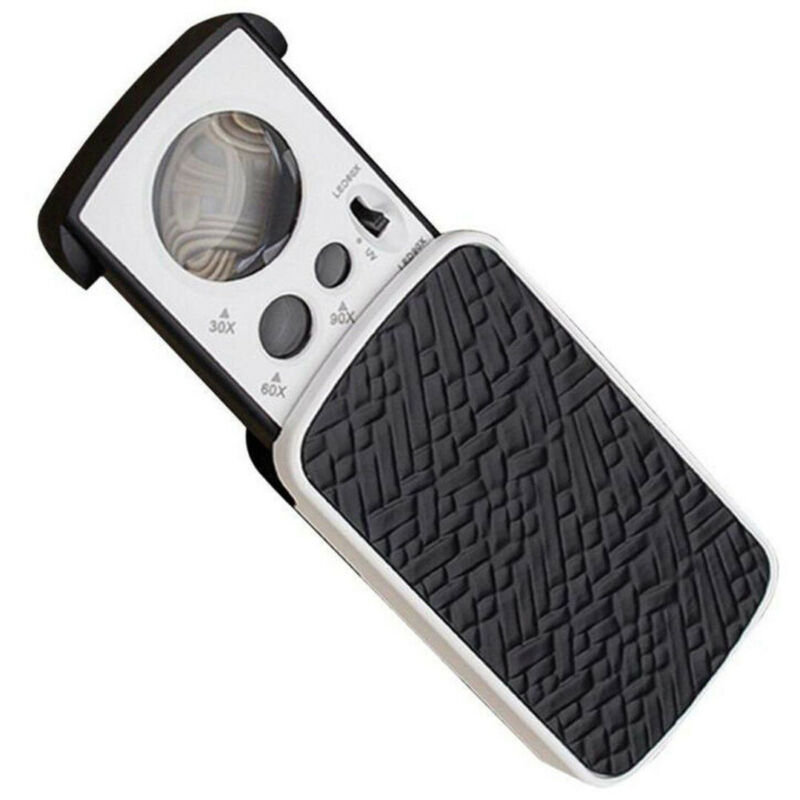 30X 60X 90X Pockets Magnifying Magnifier Jeweler Eye Glass Loupe Loop with LED Light 8.5*4.5*2CM black