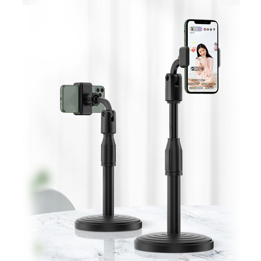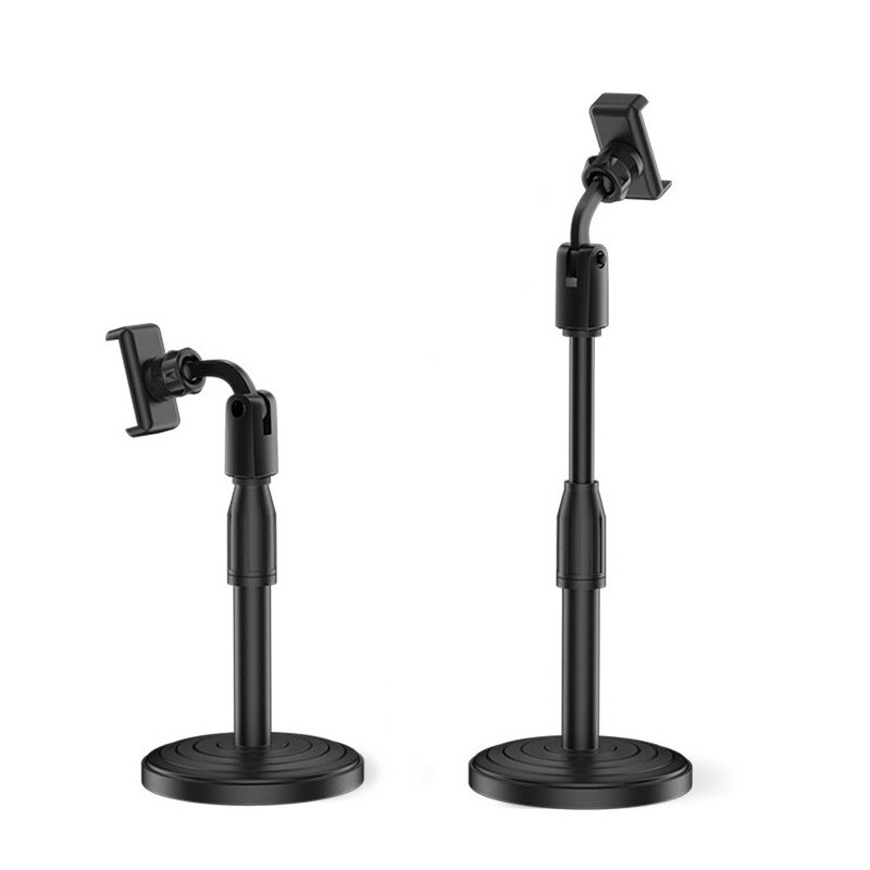 360 degres Rotation support de telephone portable universel pince support de bureau hauteur reglable pour la diffusion en direct de telephone portable – Noir